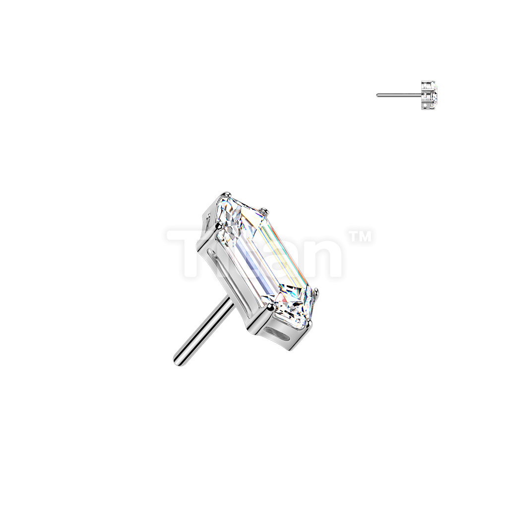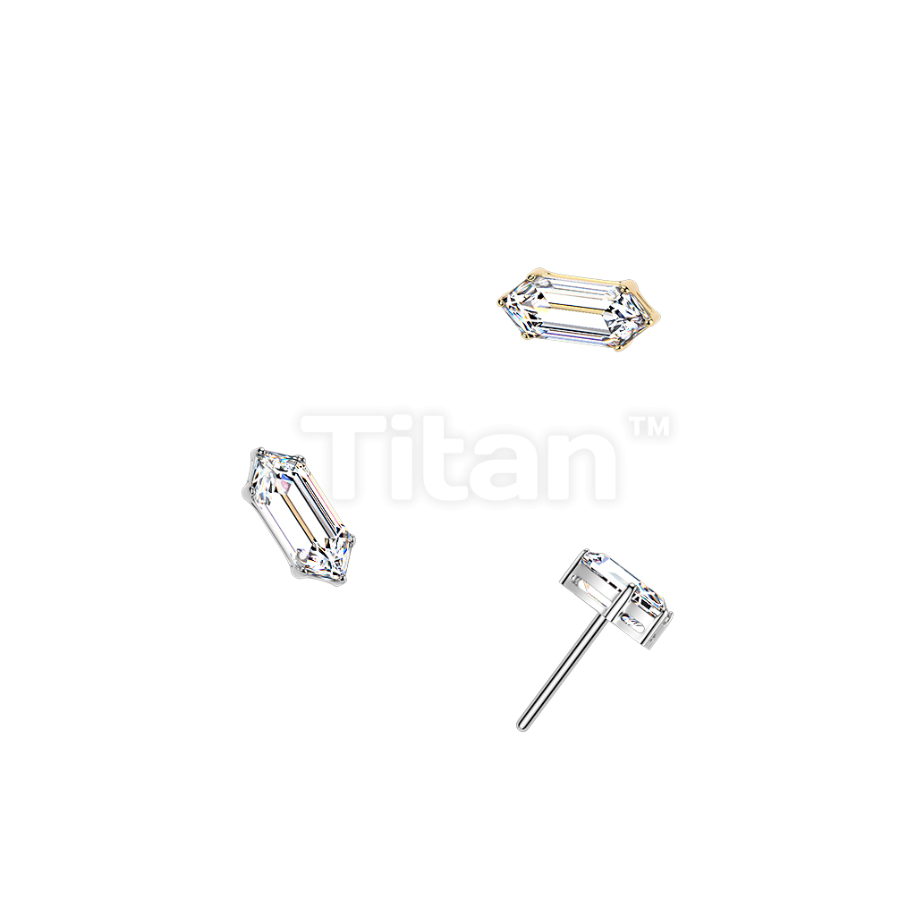 Titanium Threadless Push In Prong Set Elongated Hexagon CZ Top