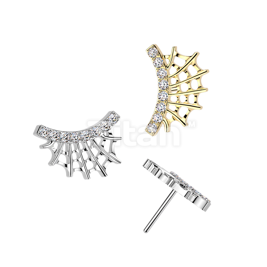 Titanium Threadless Push In Top Lined CZ Spider Web
