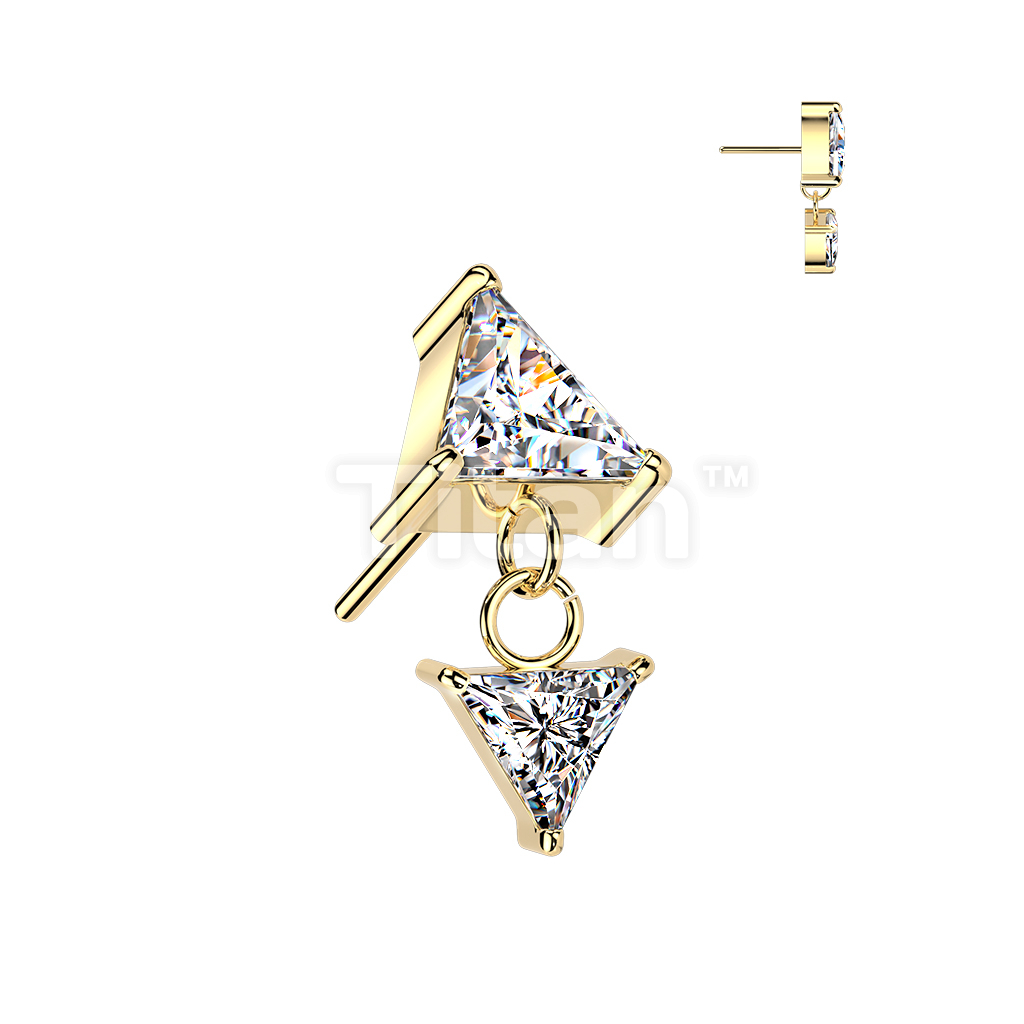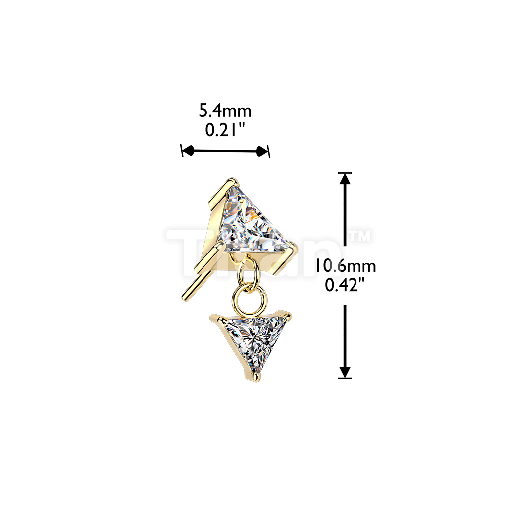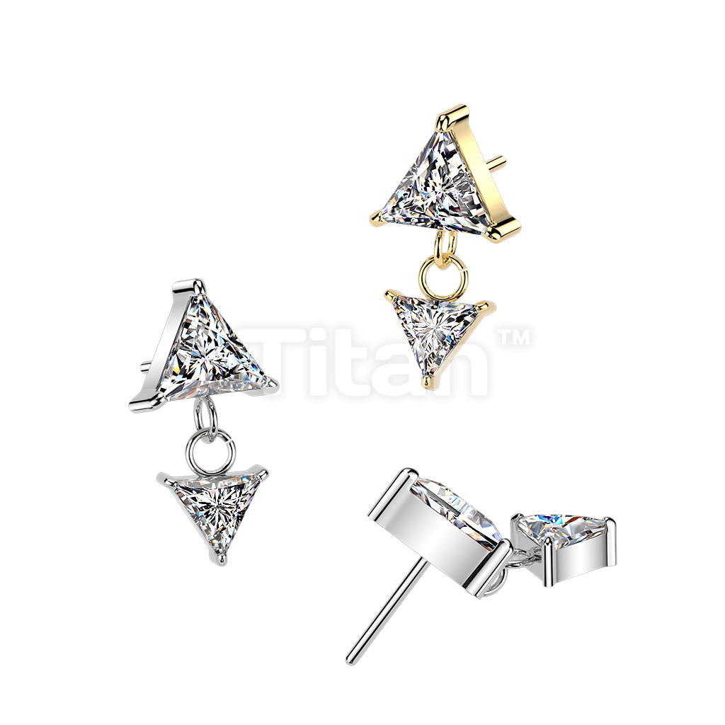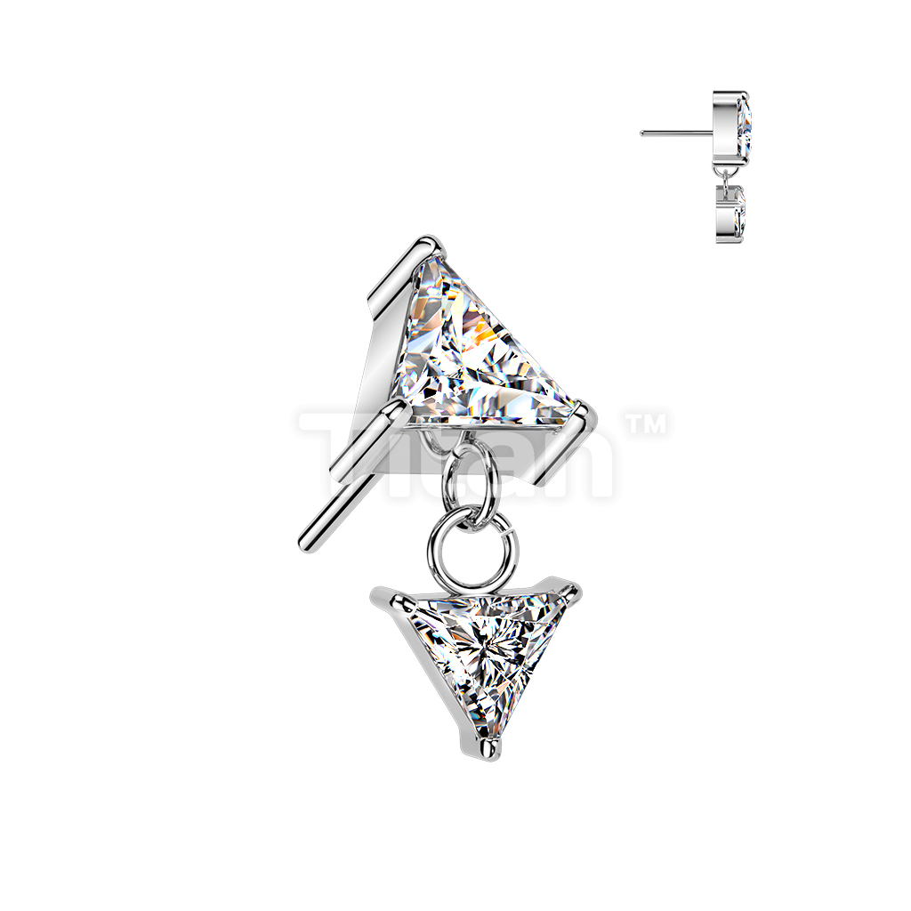 Titanium Threadless Push In Prong Set Triangle CZ Top & Dangle