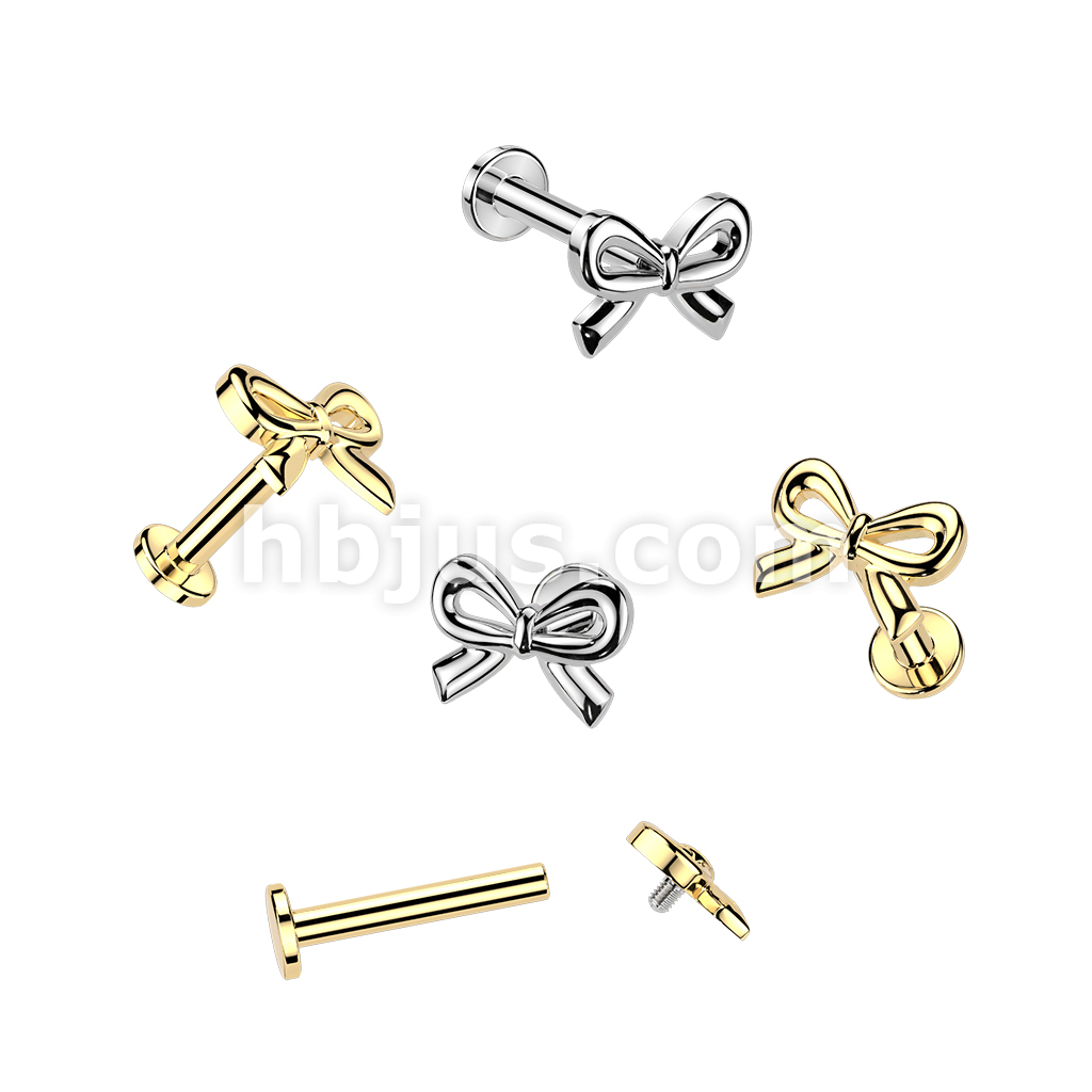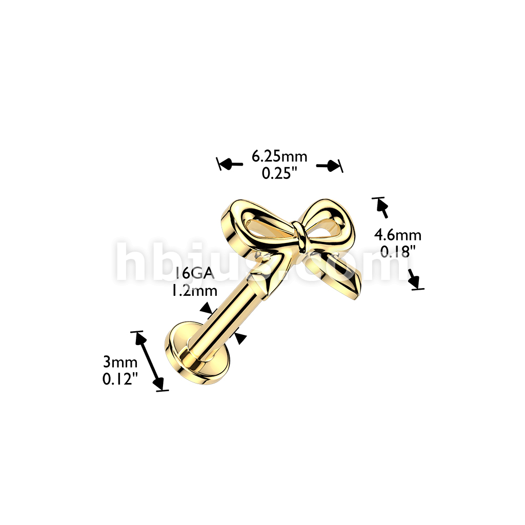 316L Internally Threaded Flat Back Labret With Ribbon Top