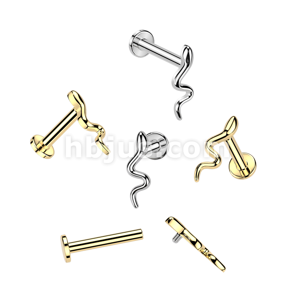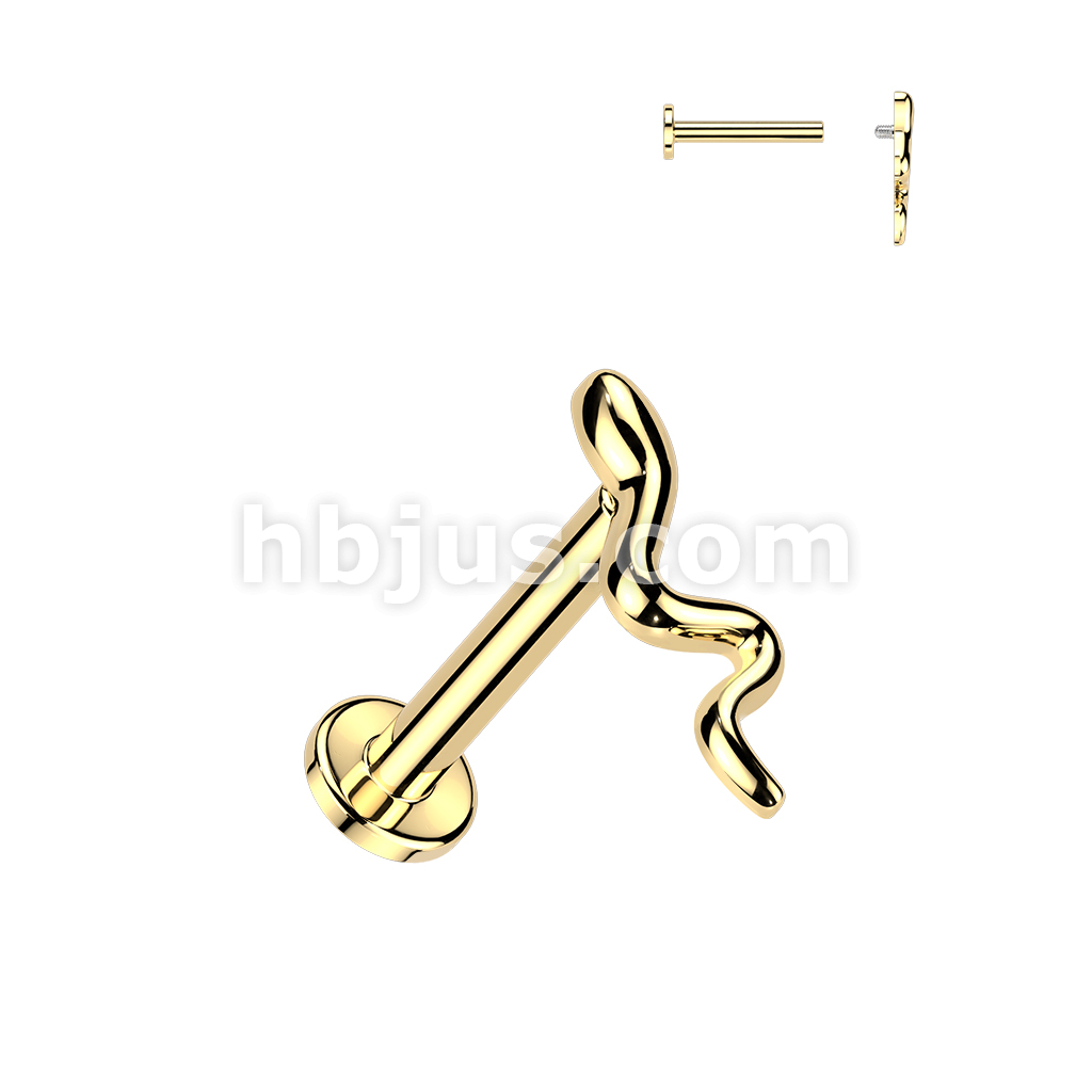 316L Internally Threaded Flat Back Labret With Slithering Snake Top