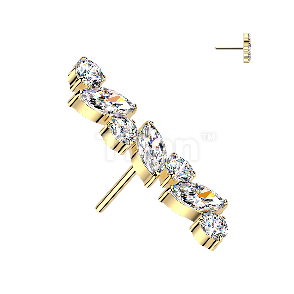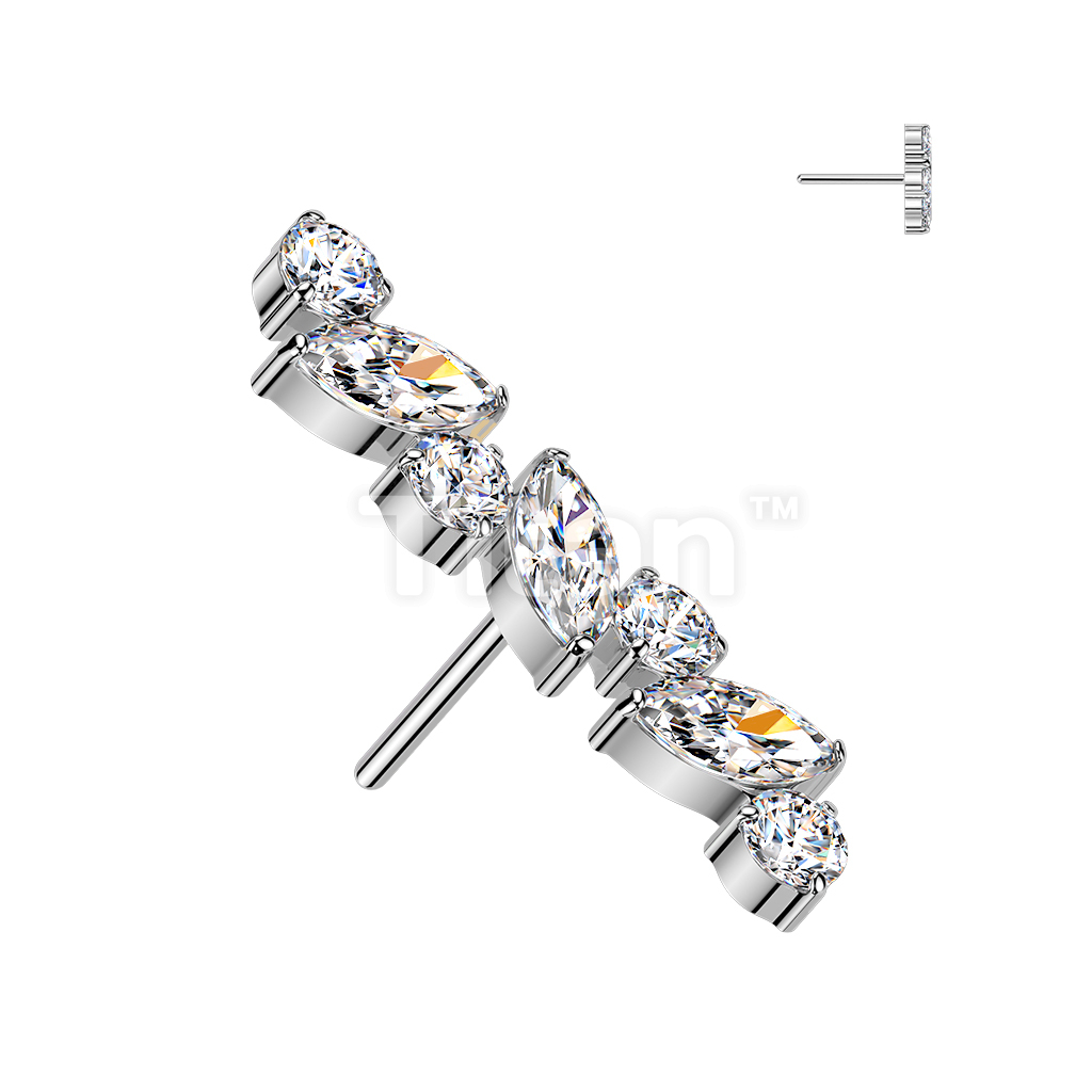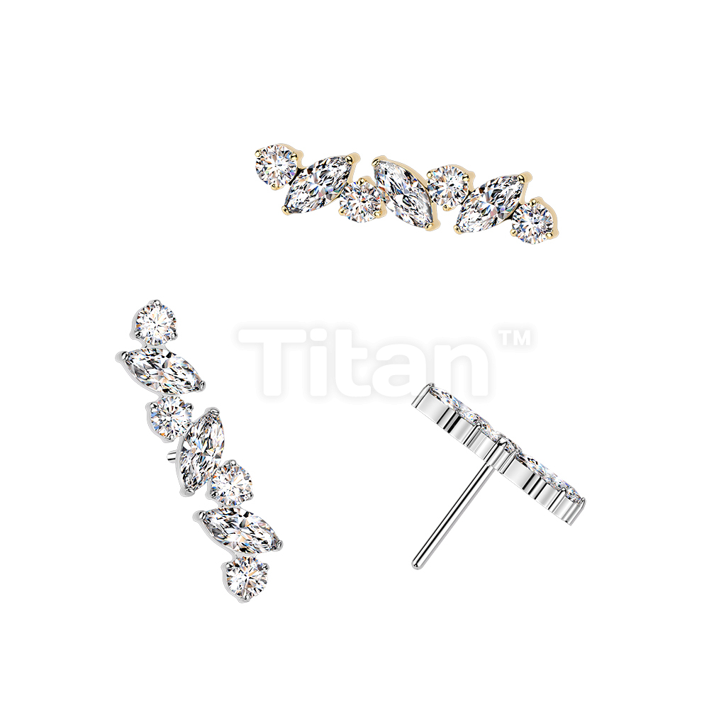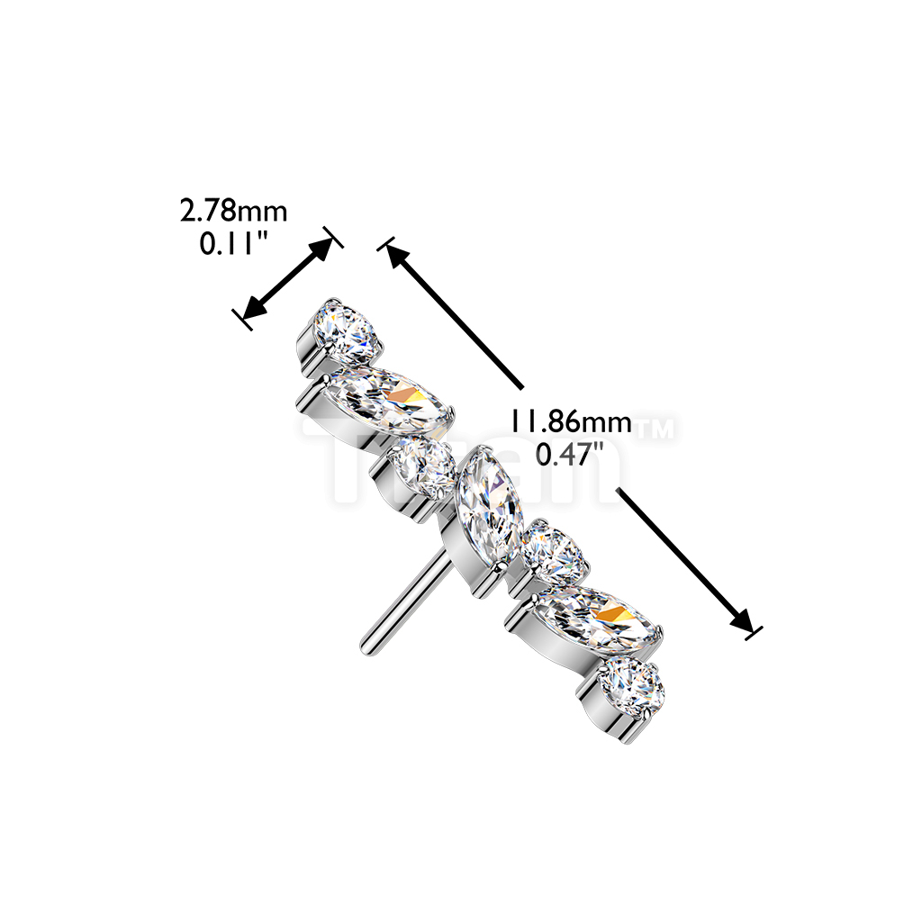 Titanium Threadless Push In Marquise & Round CZ Straight Top