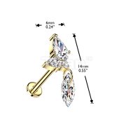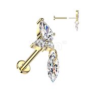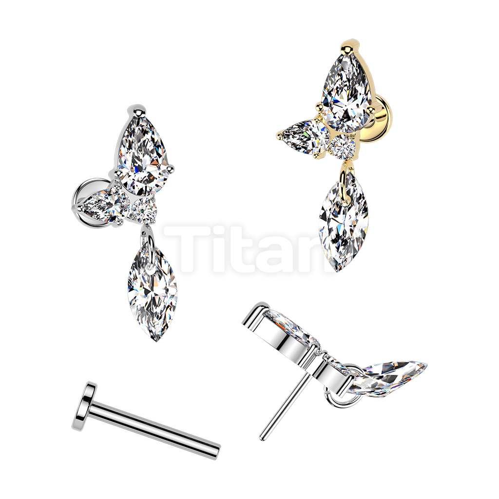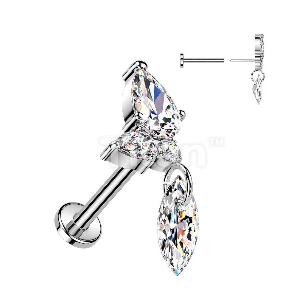 Titanium Threadless Push In Flat Back Labret With CZ Cluster & Marquise CZ Dangle