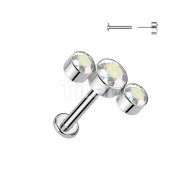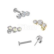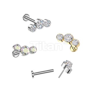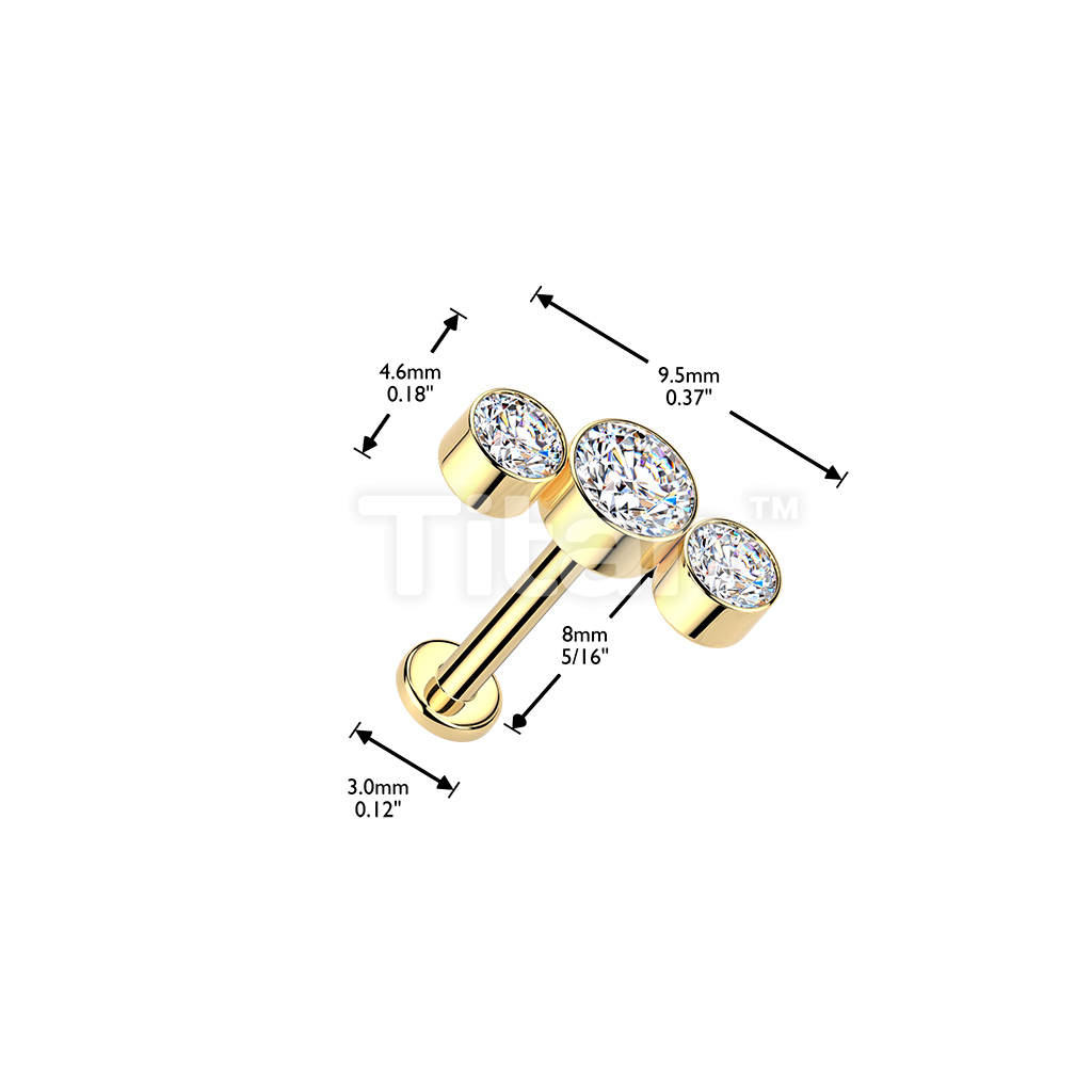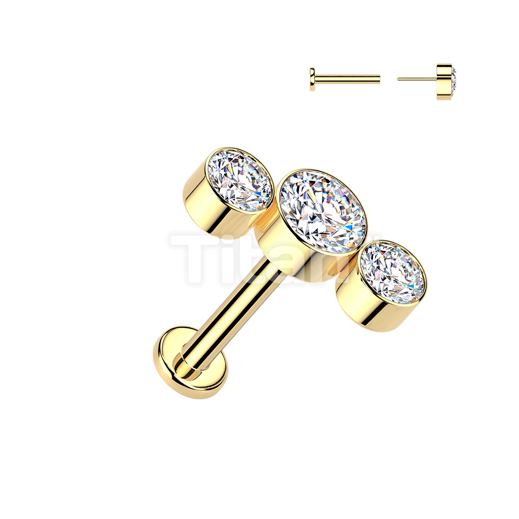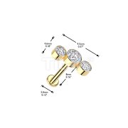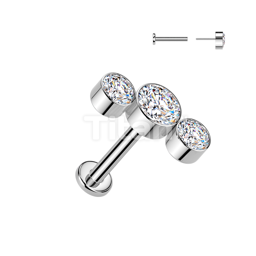 Titanium Threadless Push In Labret With 3 Round Bezel Set CZ Curve Top