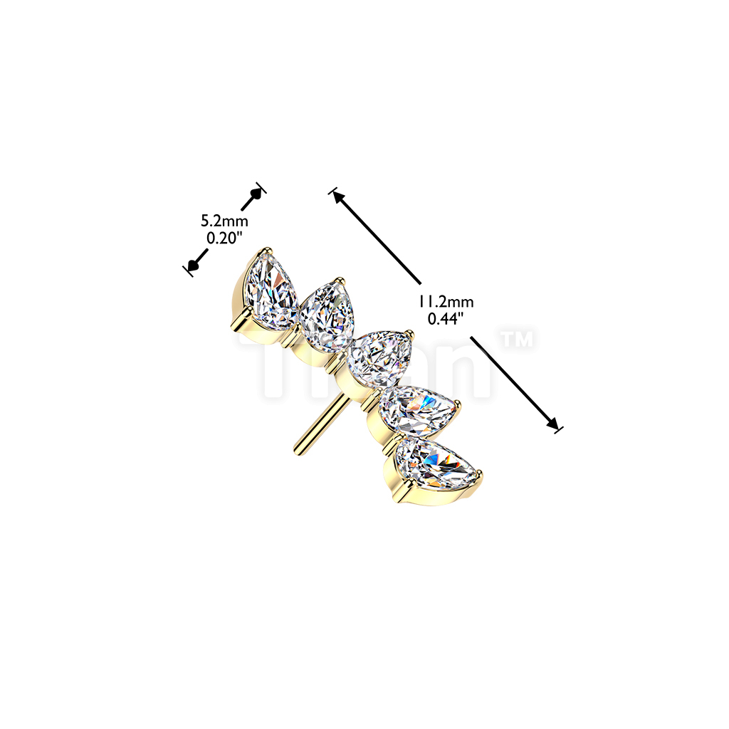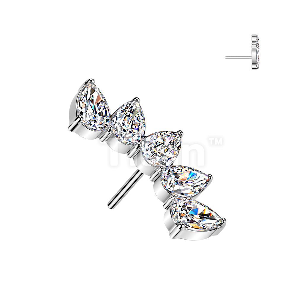Titanium Threadless Push In 5 Pear CZ Fan Top