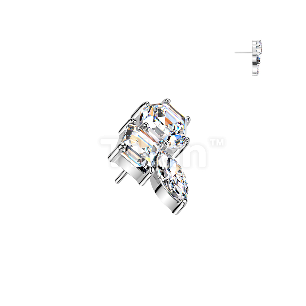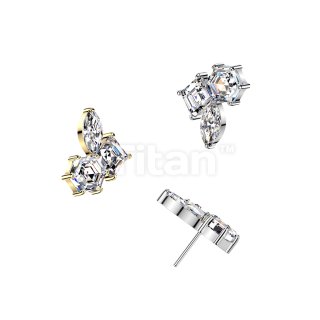 Titanium Threadless Push In Hexagon, Diamond, & Marquise CZ Cluster Top