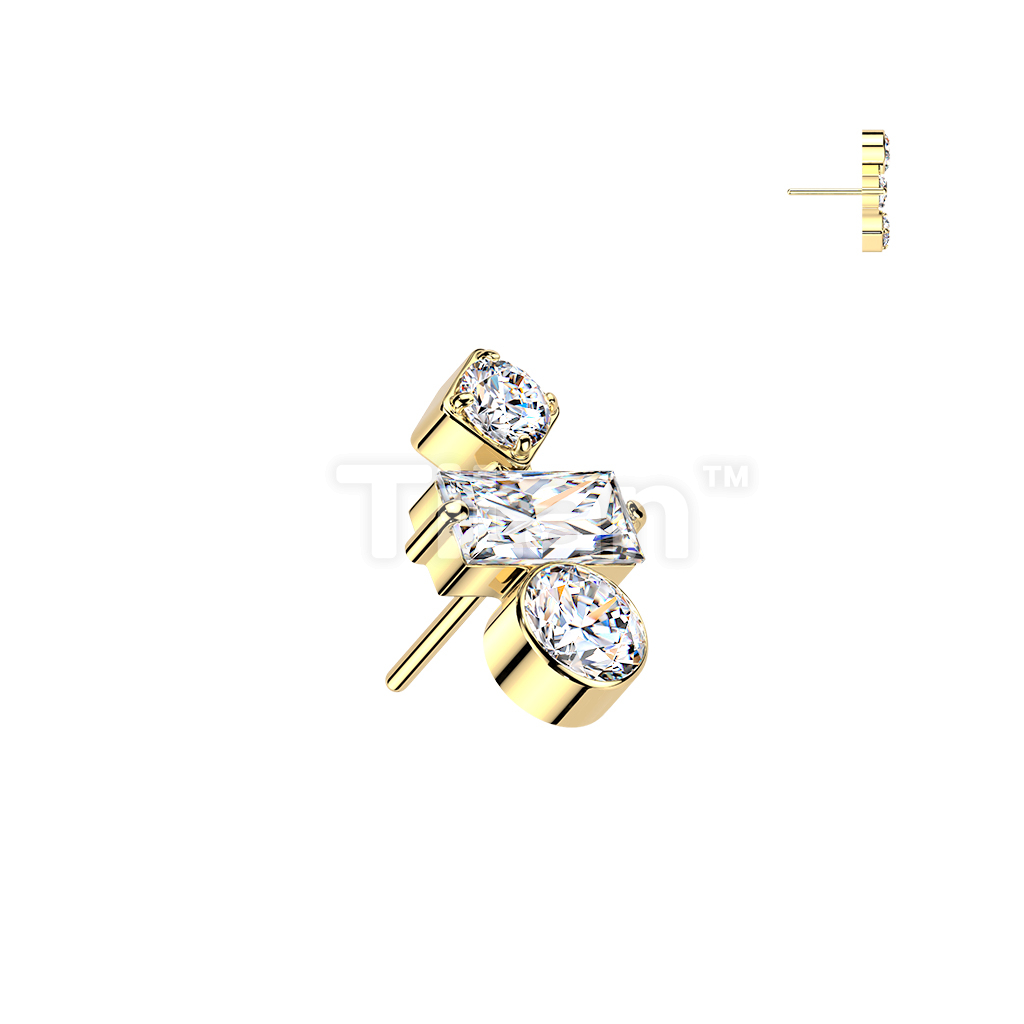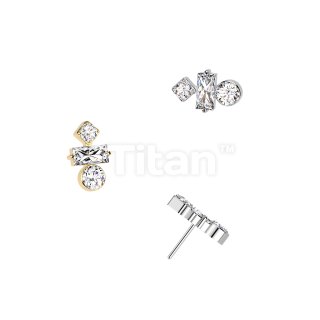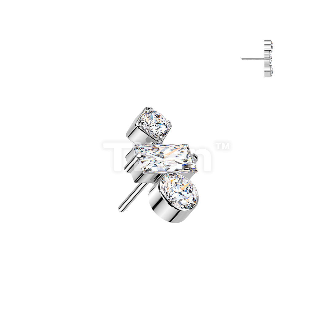 Titanium Threadless Push In Round, Baguette, & Diamond CZ Top