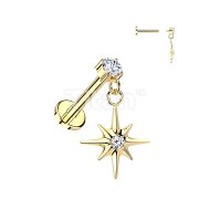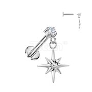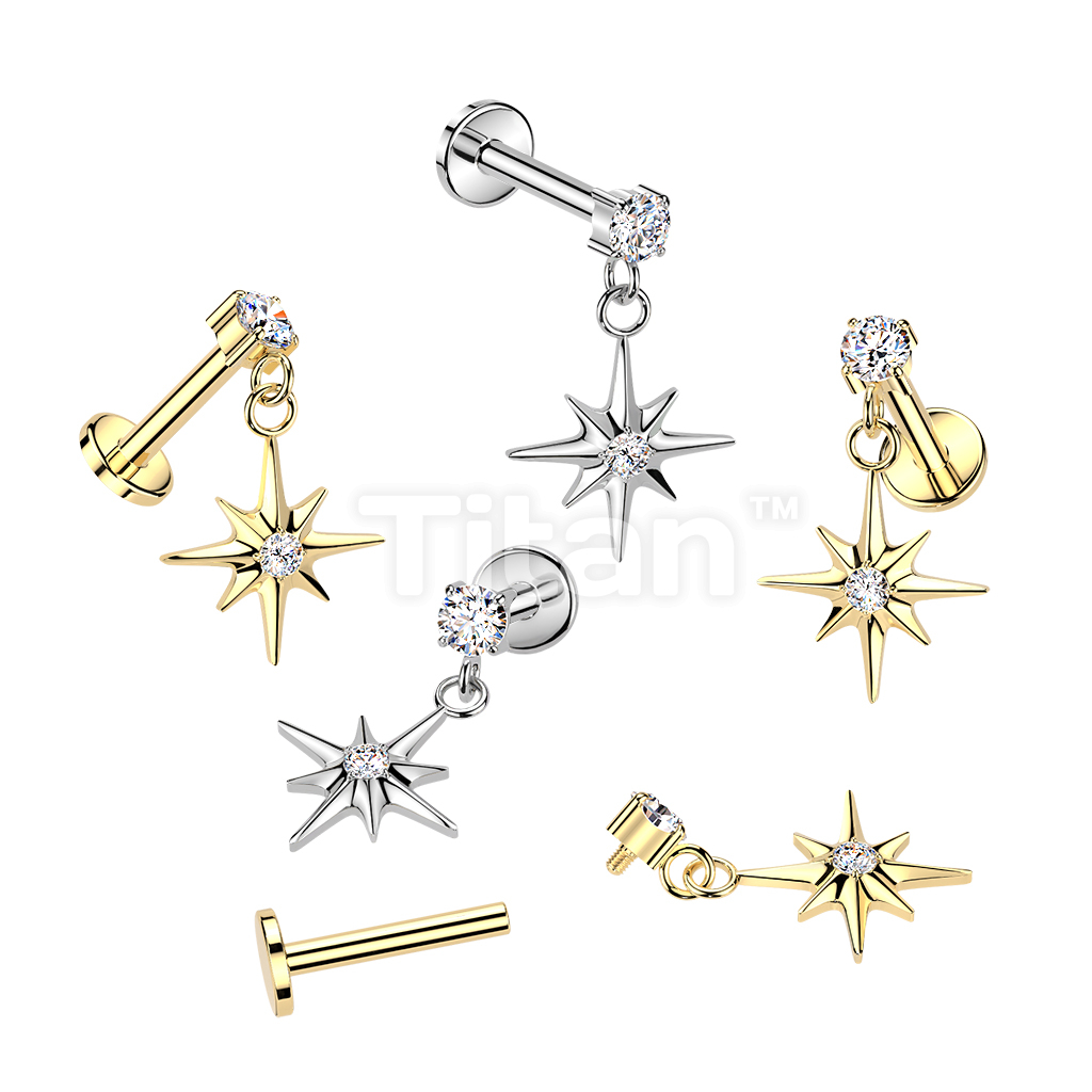 Titanium Internally Threaded Flat Back Labret With Prong Set CZ & Starburst Dangle