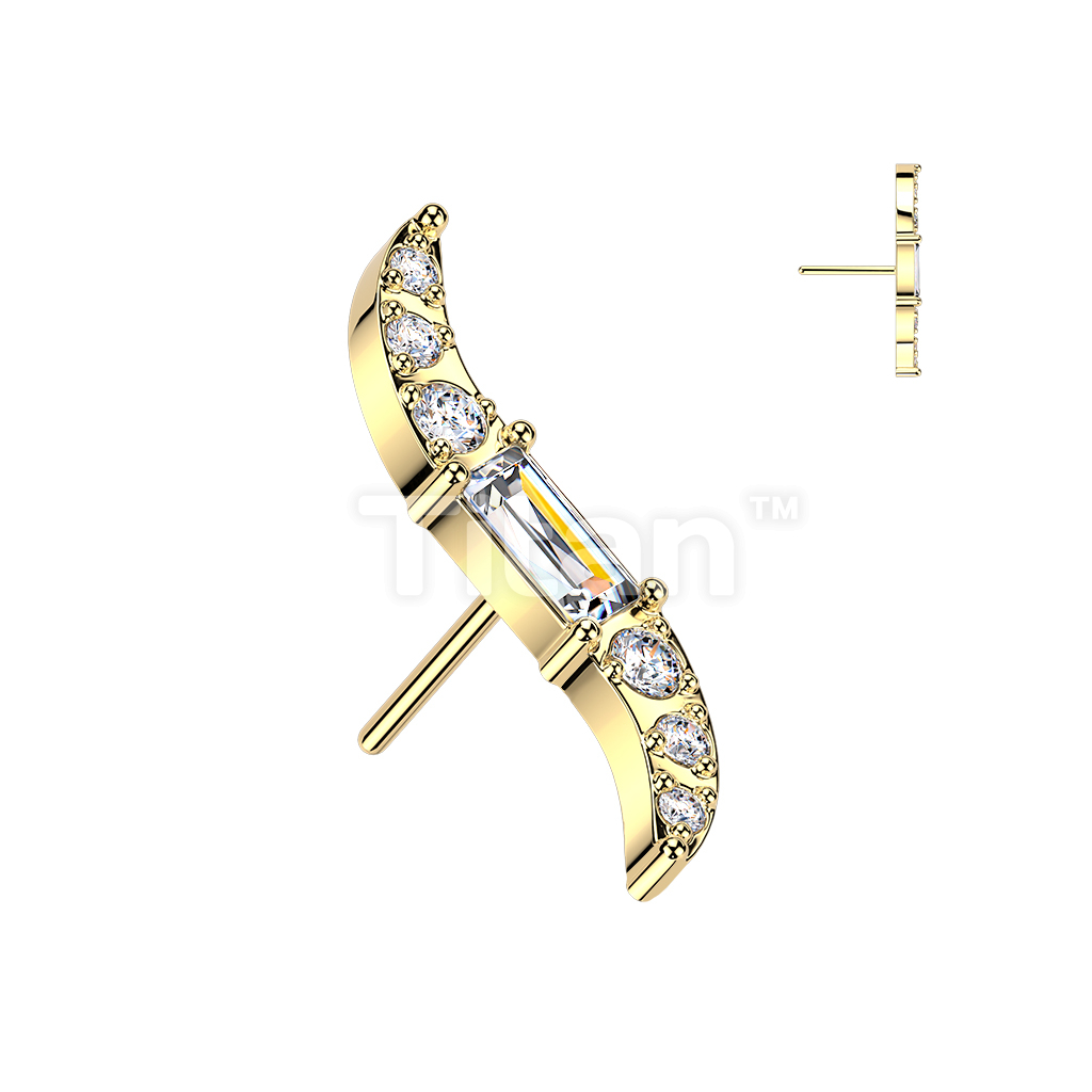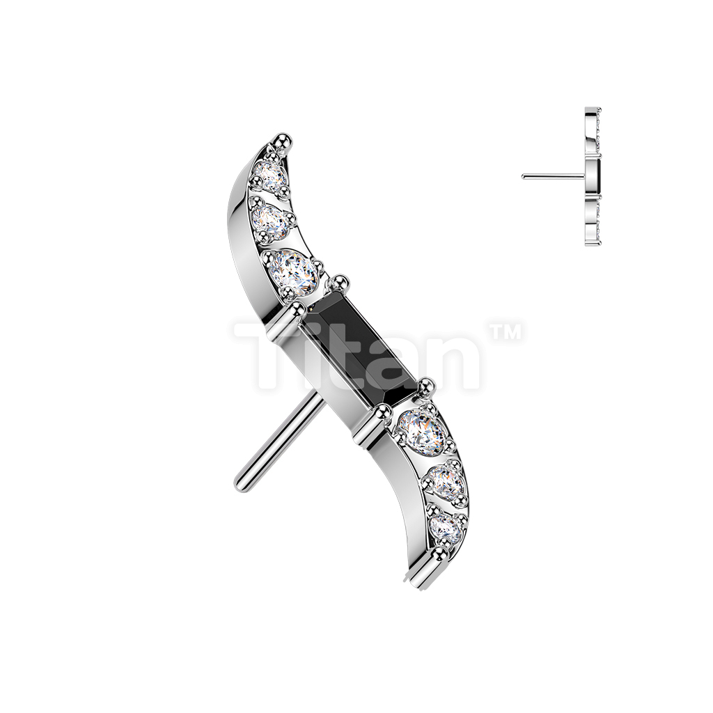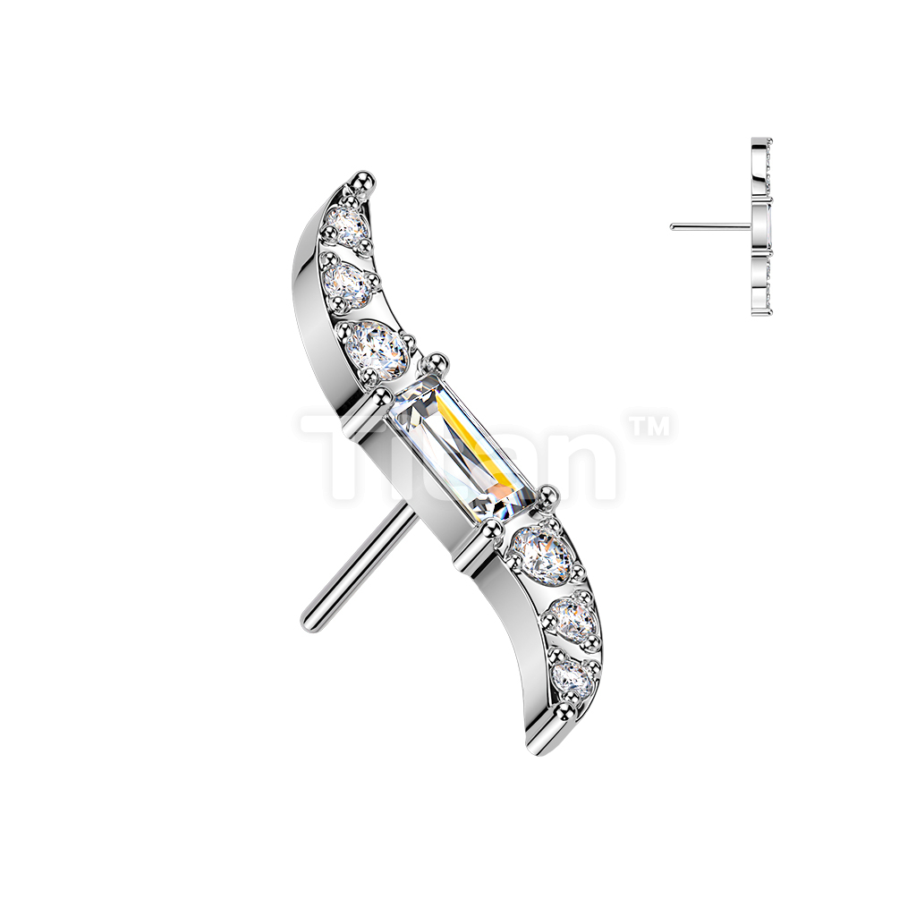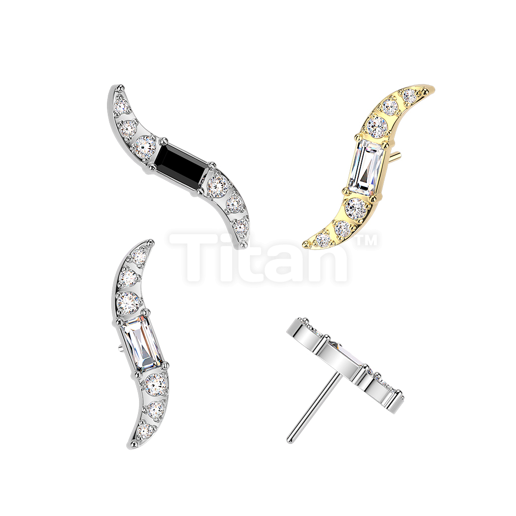 Titanium Threadless Push In Wave Top With Baguette CZ Center and Round CNC Set CZ