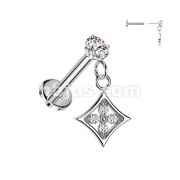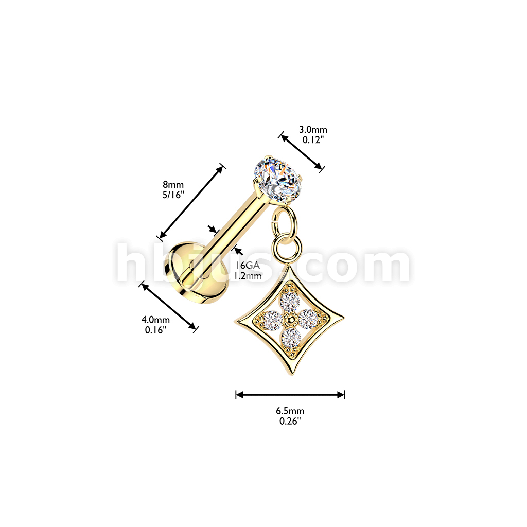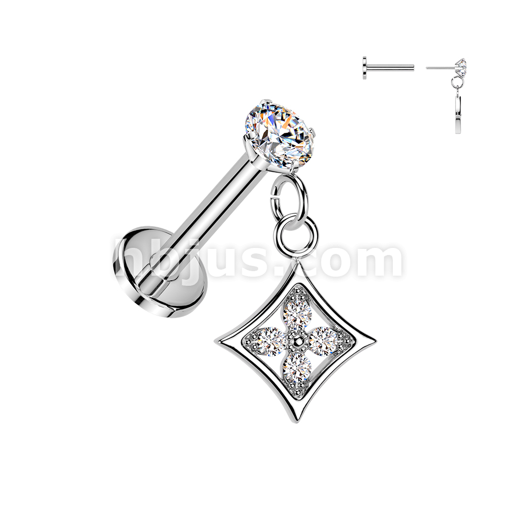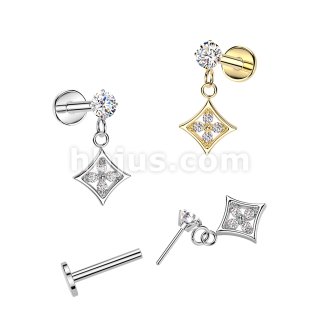 316L Threadless Push In Flat Back Stud With Prong Set CZ & Diamond Cluster