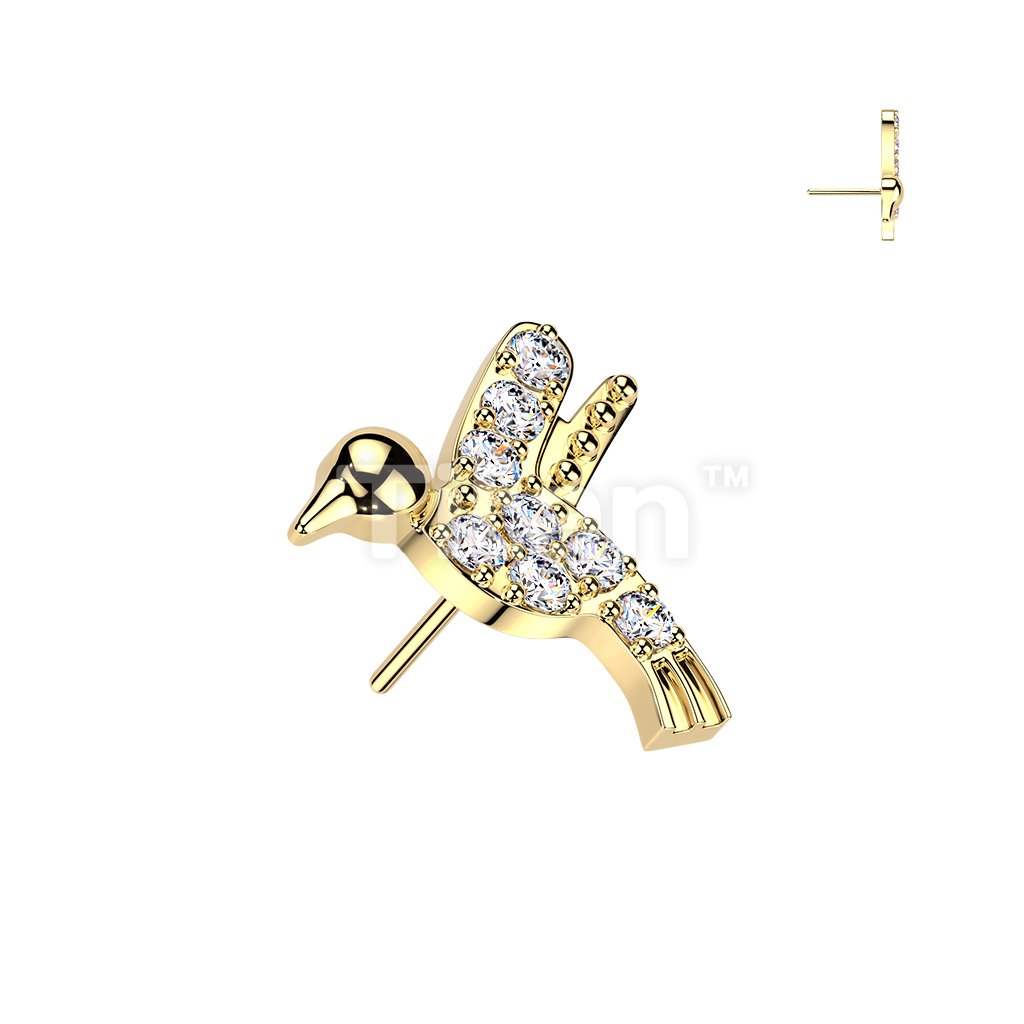 Titanium Threadless Push In Pave CZ Hummingbird Top