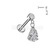 All 316L Internally Threaded Flat Back Labret With Bezel Set CZ & Pear CZ Dangle