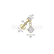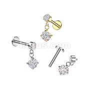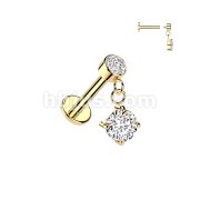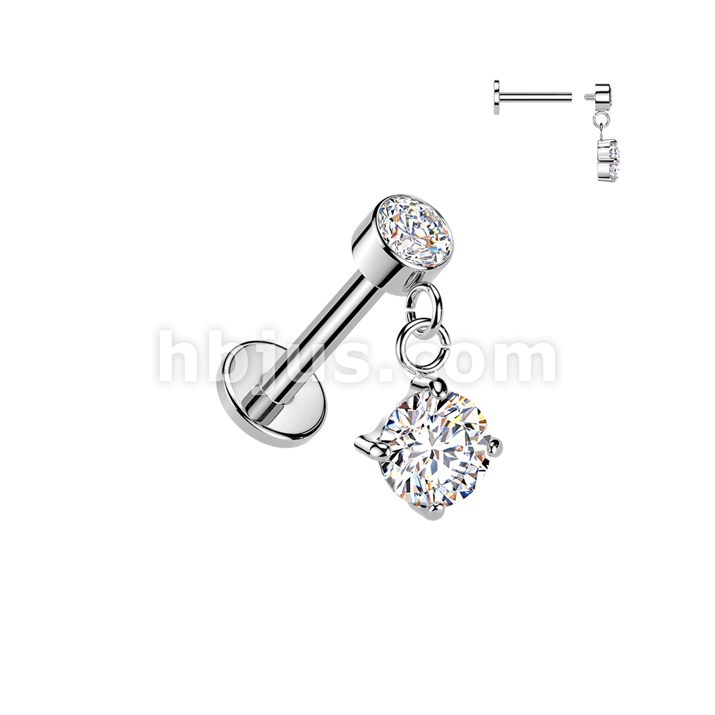All 316L Internally Threaded Flat Back Labret With Bezel Set CZ & Round CZ Dangle