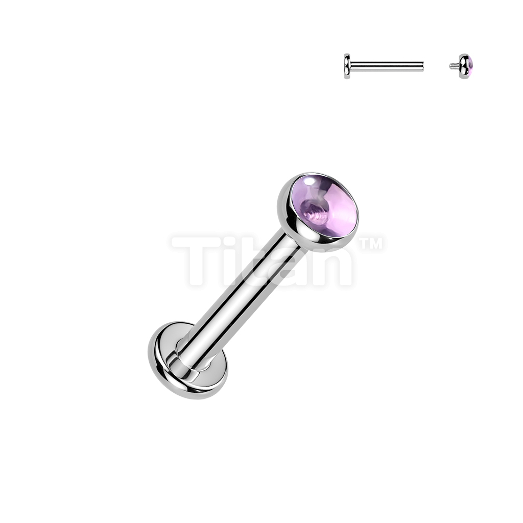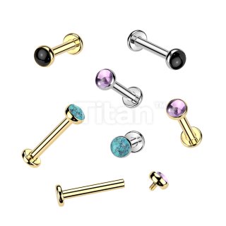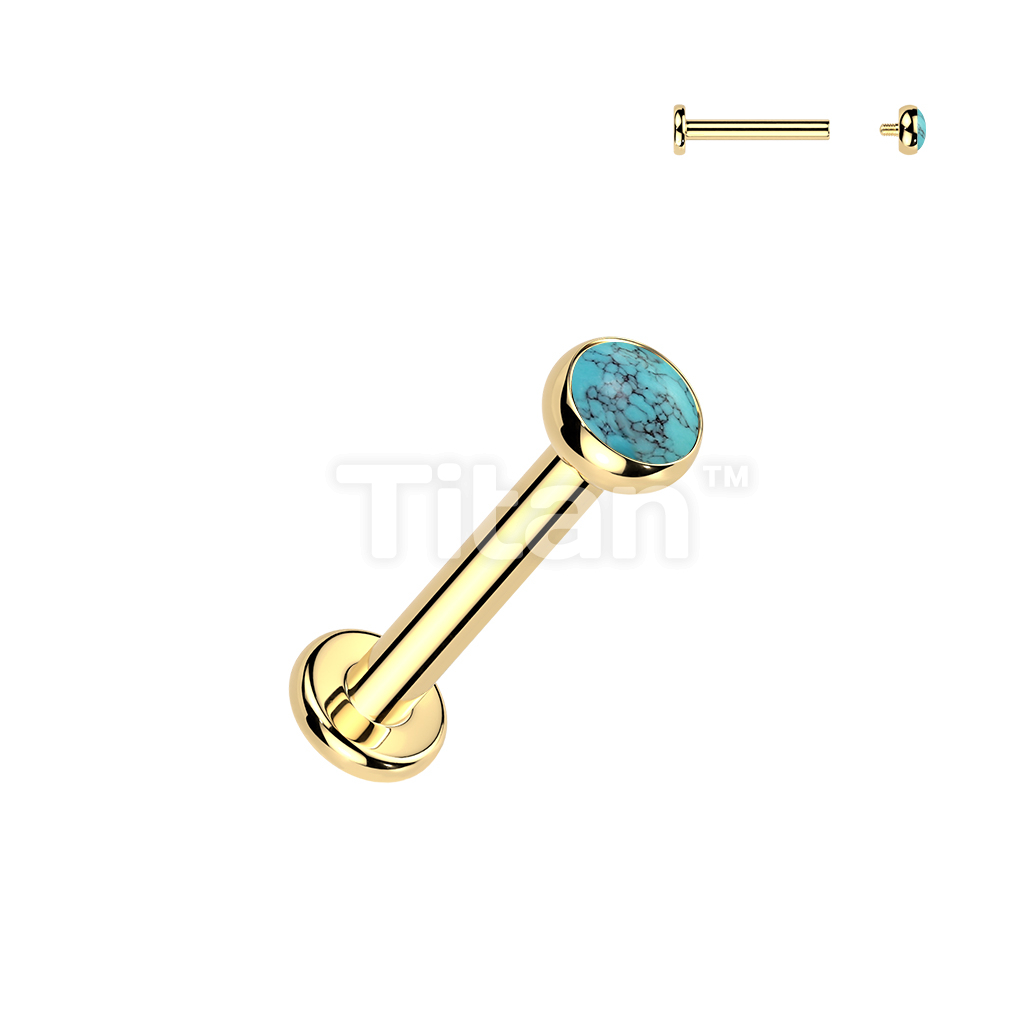 Titanium Internally Threaded Flat Back Labret With Natural Stone Top