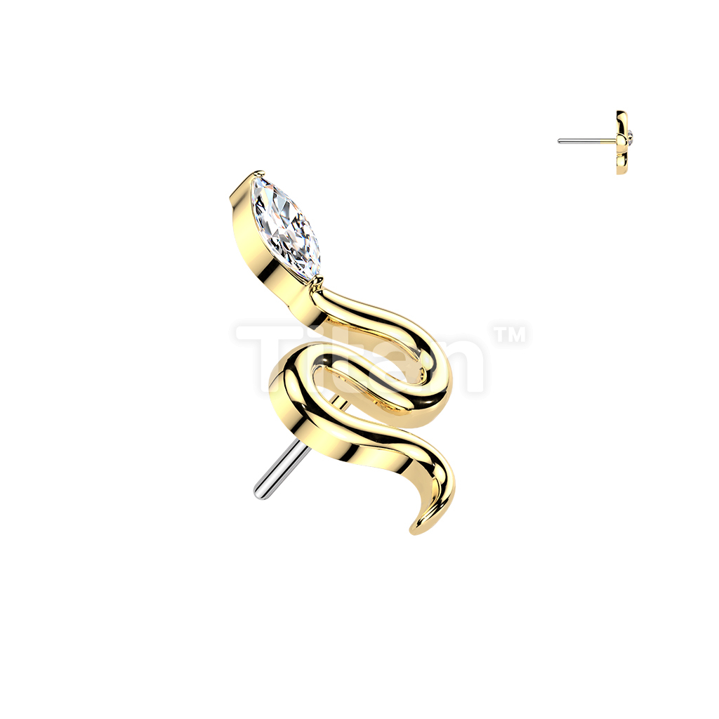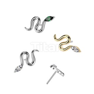 Titanium Threadless Push In Snake Top With Marquise CZ Head