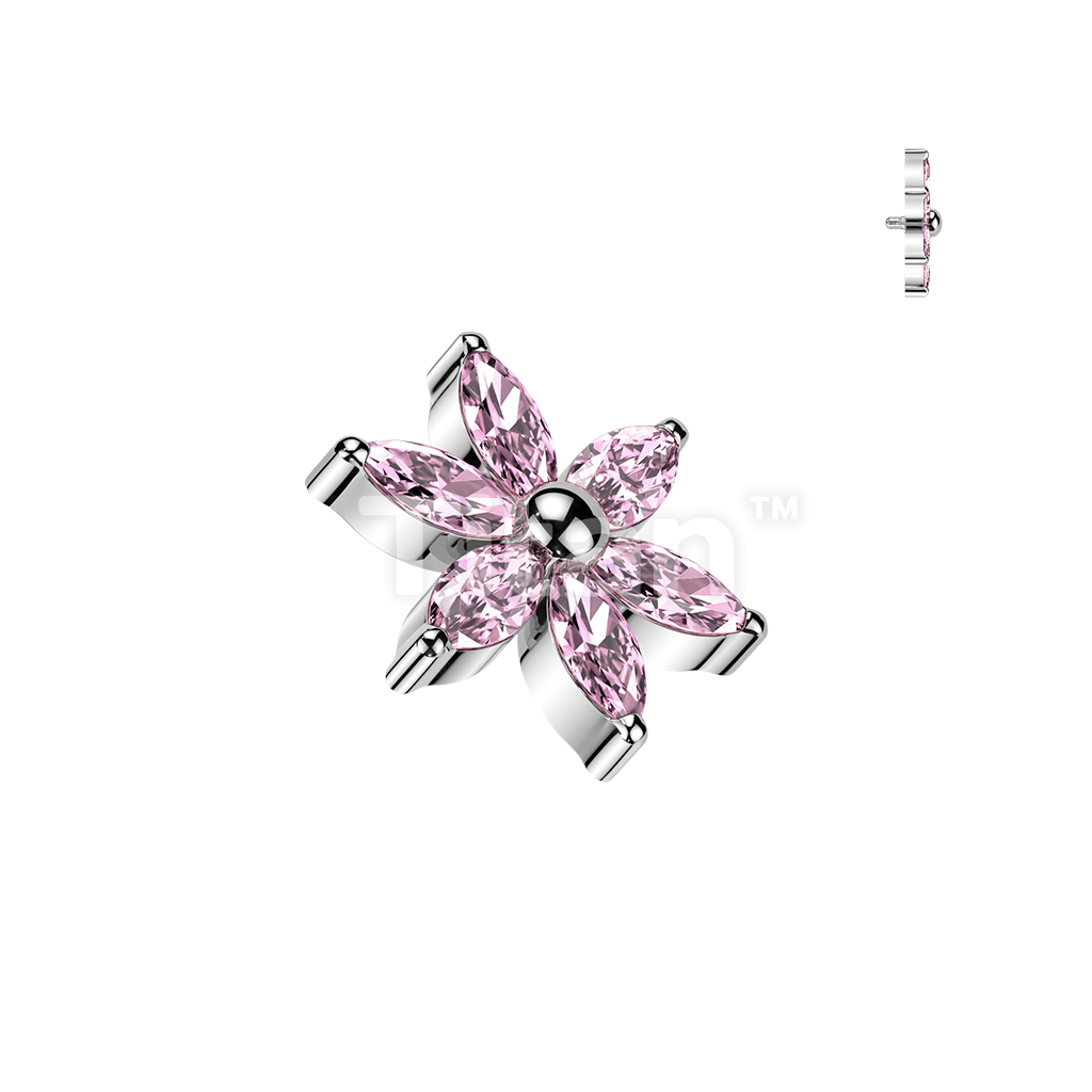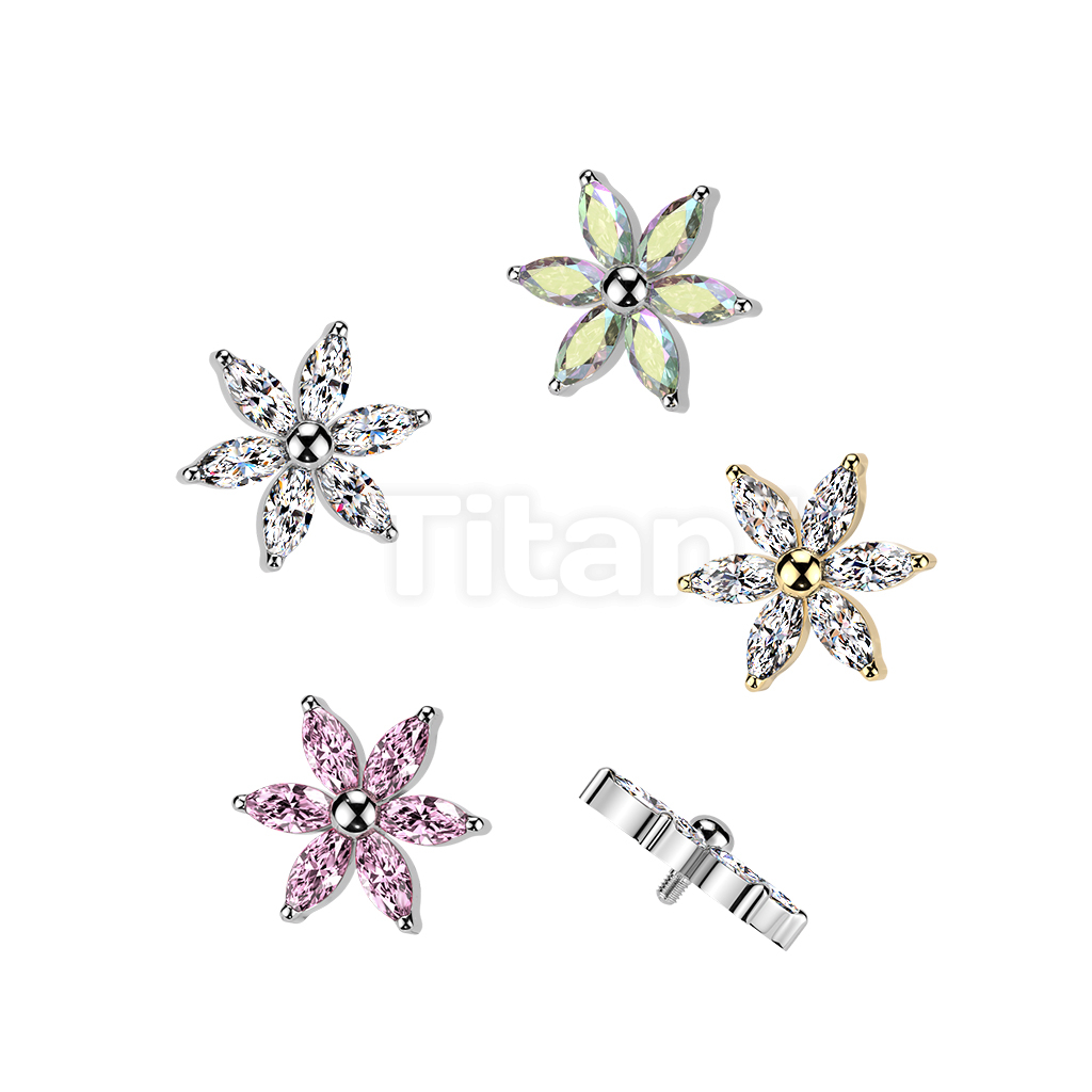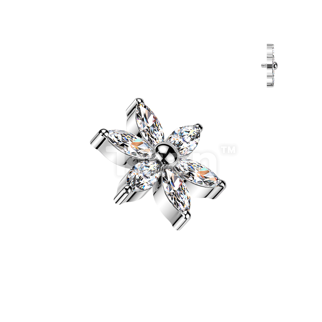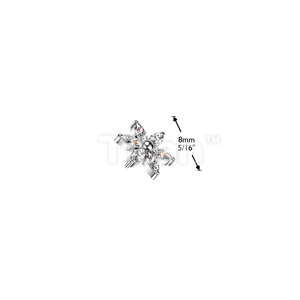 Titanium Internally Threaded 6 Marquise CZ Flower Top