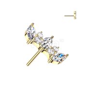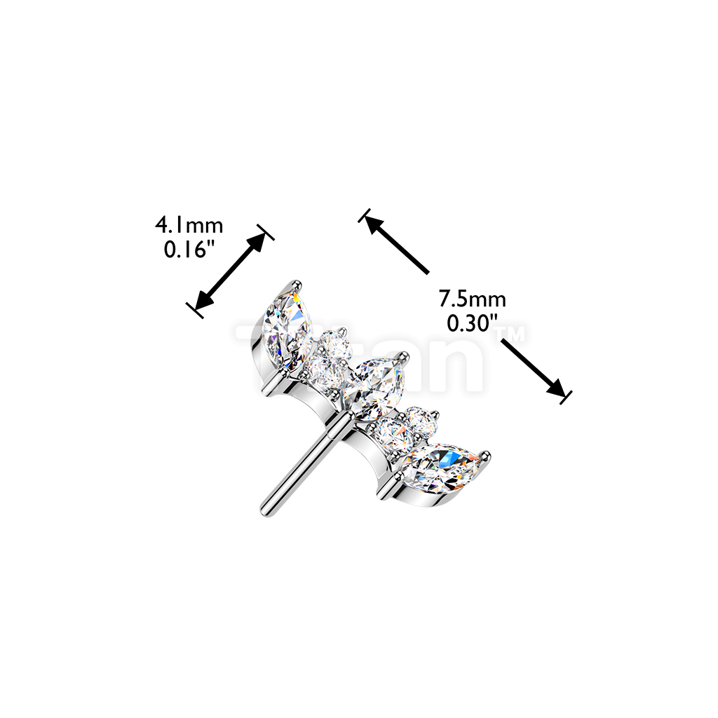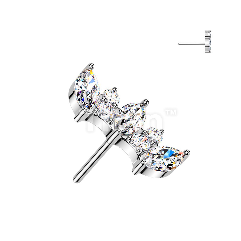 Titanium Threadless Push In Marquise & Round CZ Fan Top