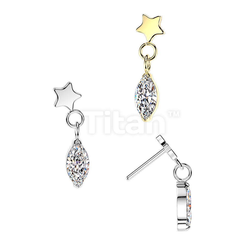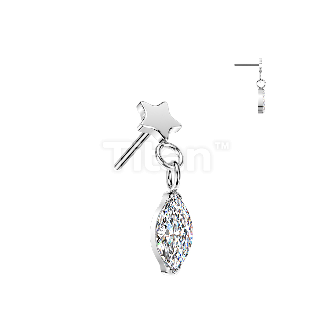 Titanium Threadless Push In Flat Star Top And Marquise CZ Dangle
