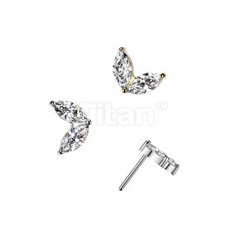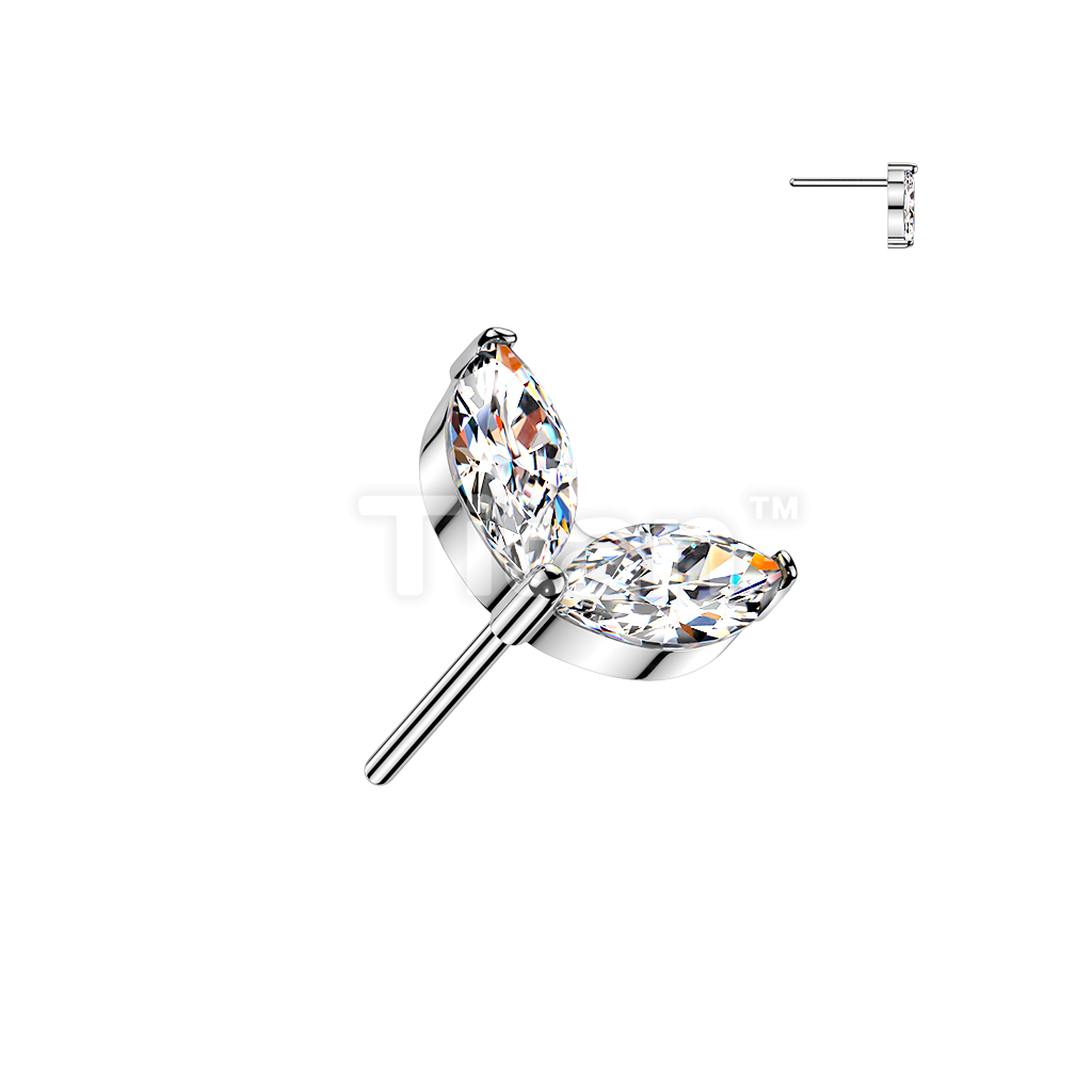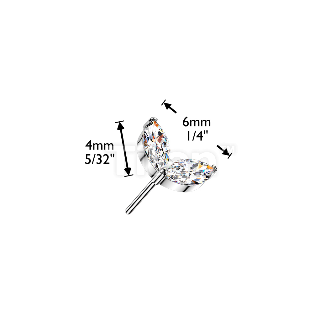 Titanium Threadless Push In Double Marquise CZ Leaf Top