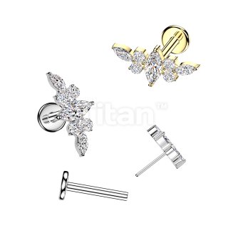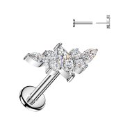 Titanium Threadless Push In Flat Back Labret With Marquise CZ Wing Top
