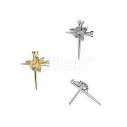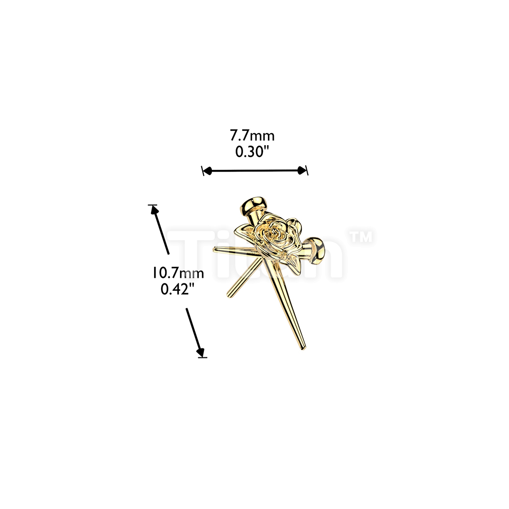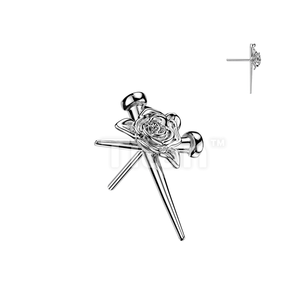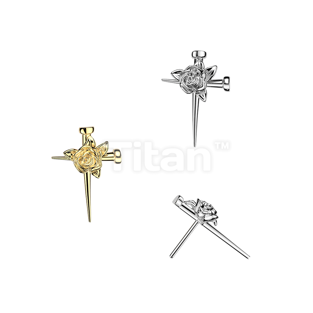 Titanium Threadless Push In Nail Cross Top With Rose Center