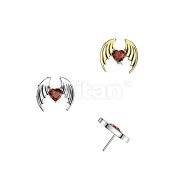 Titanium Threadless Push In Bat Wing Top With Heart CZ Center
