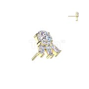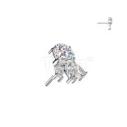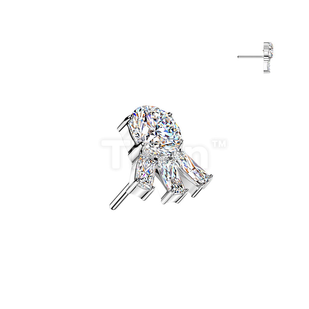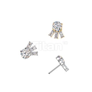 Titanium Threadless Push In Round CZ Top With 3 Baguette CZ
