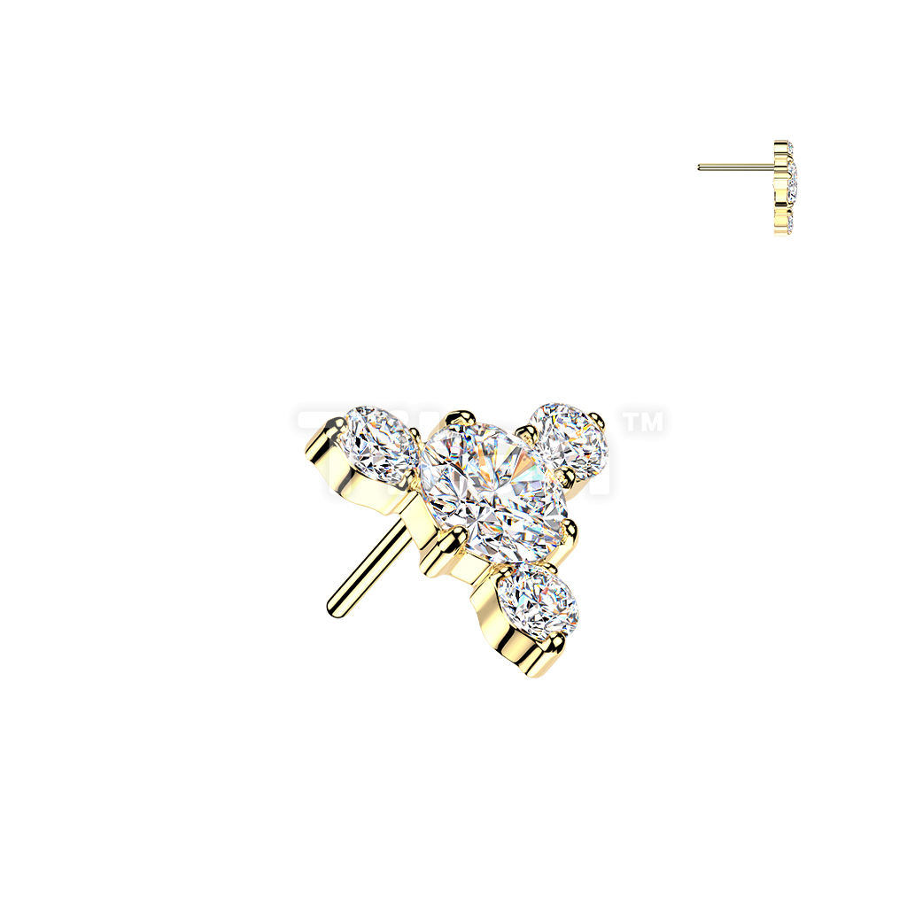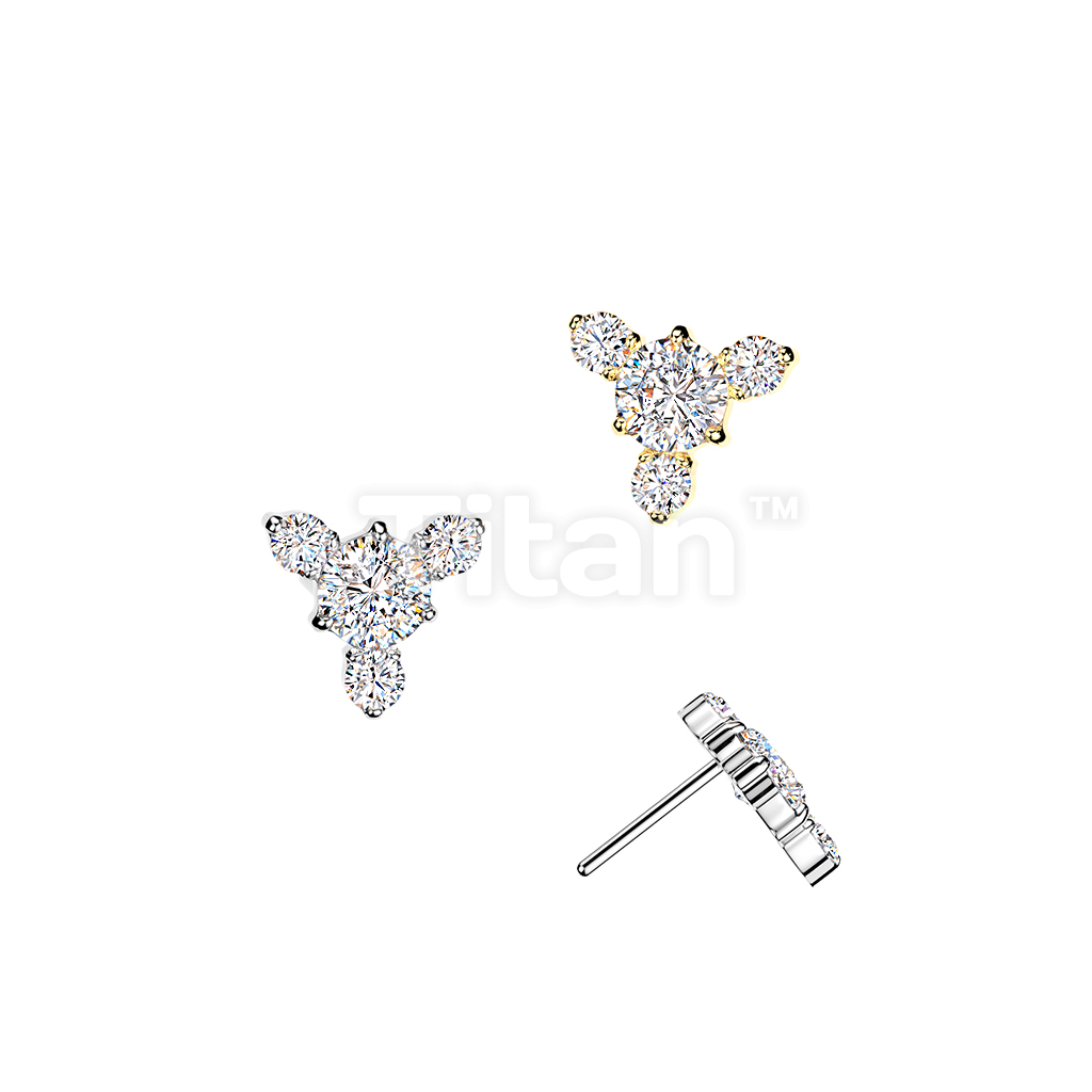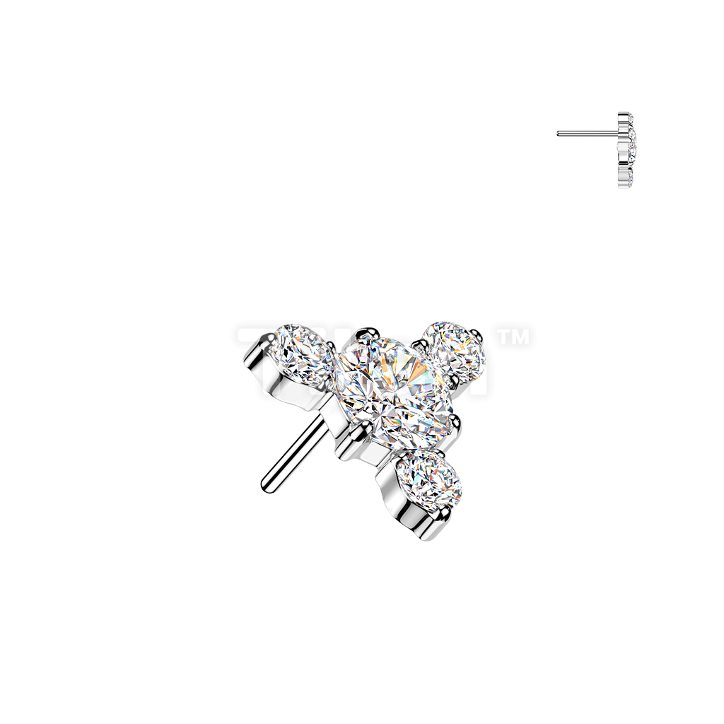 Titanium Threadless Push In Round CZ Top With 3 Small CZ