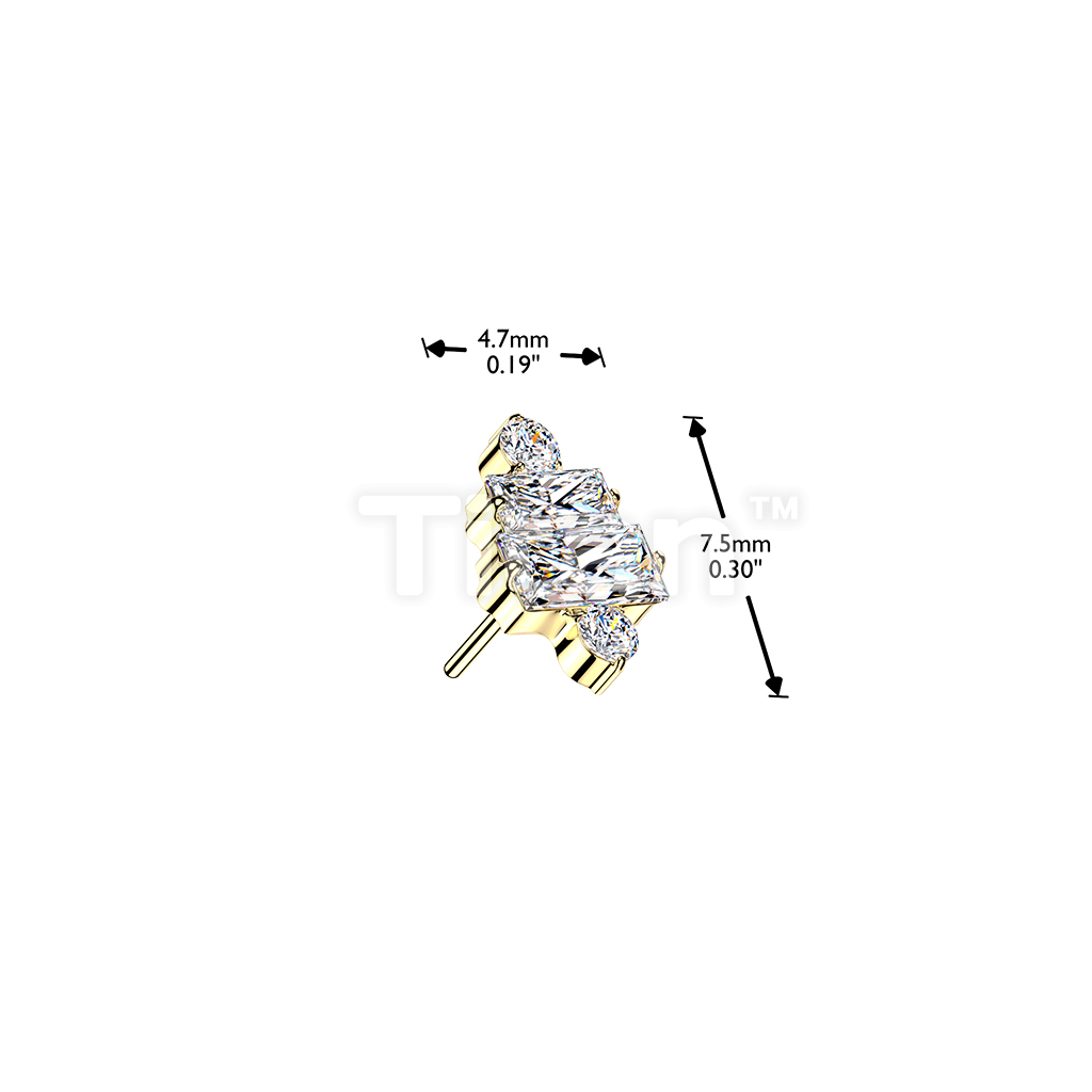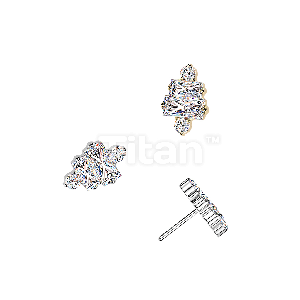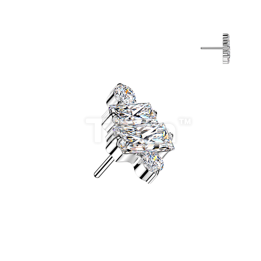 Titanium Threadless Push In 2 Baguette & 2 Round CZ Cluster Top