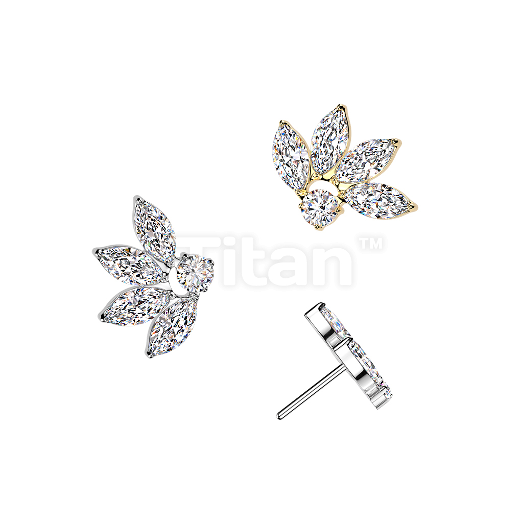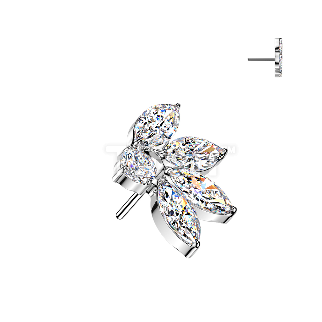 Titanium Threadless Push In 4 Marquise CZ Fan With Round CZ Top