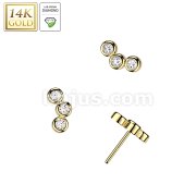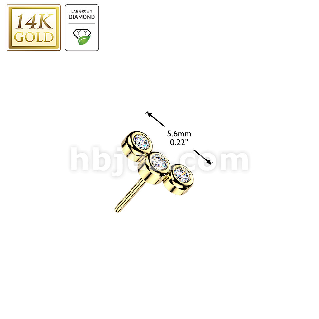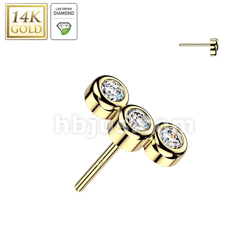 14K Gold Threadless Mini Curved Top With 3 Lab Grown Diamonds