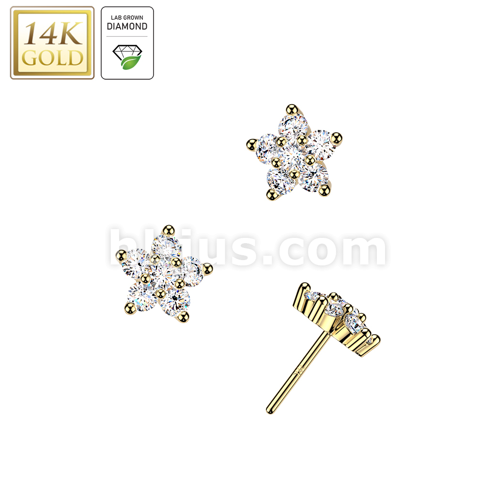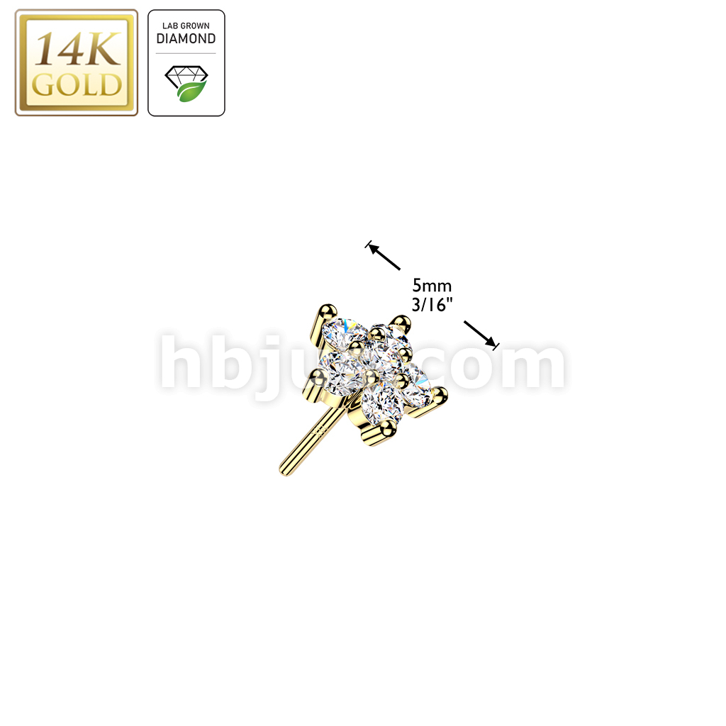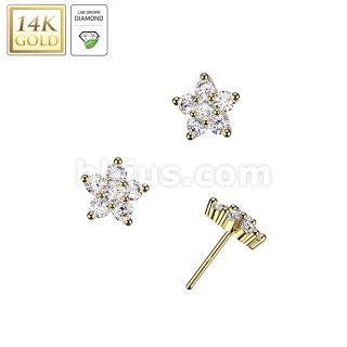 14K Gold Threadless Flower Top With 6 Lab Grown Diamonds