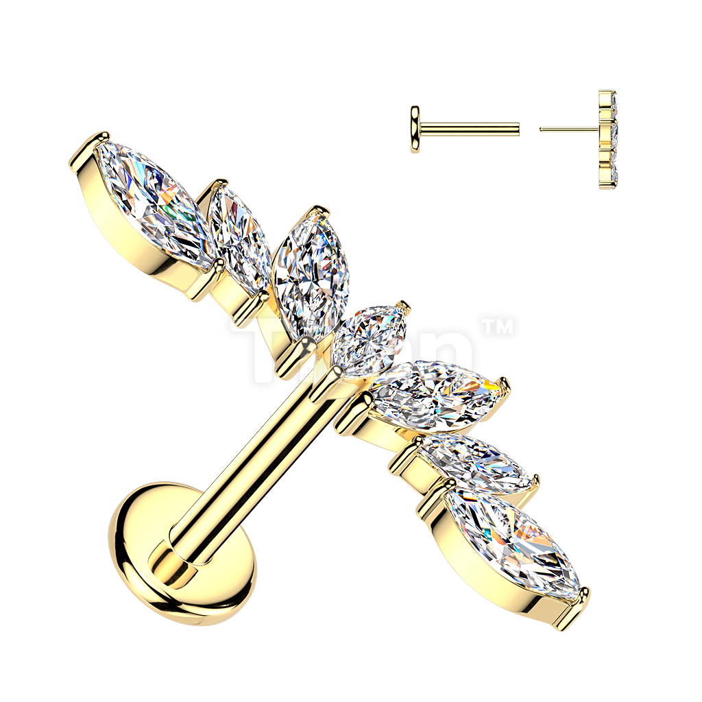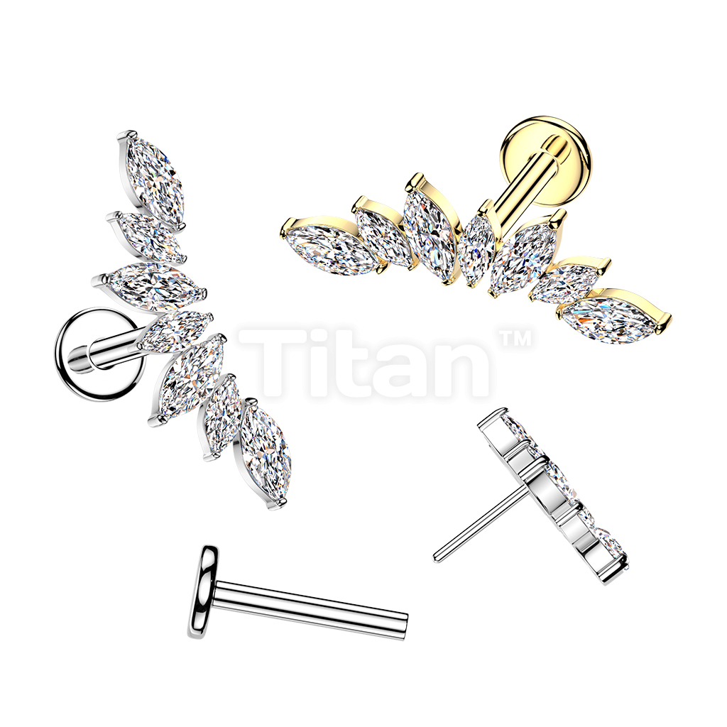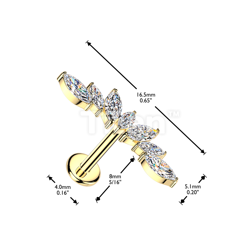 Titanium Threadless Push In Labret With 7 Marquise CZ Wide Fan Top