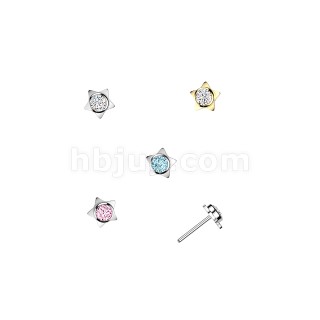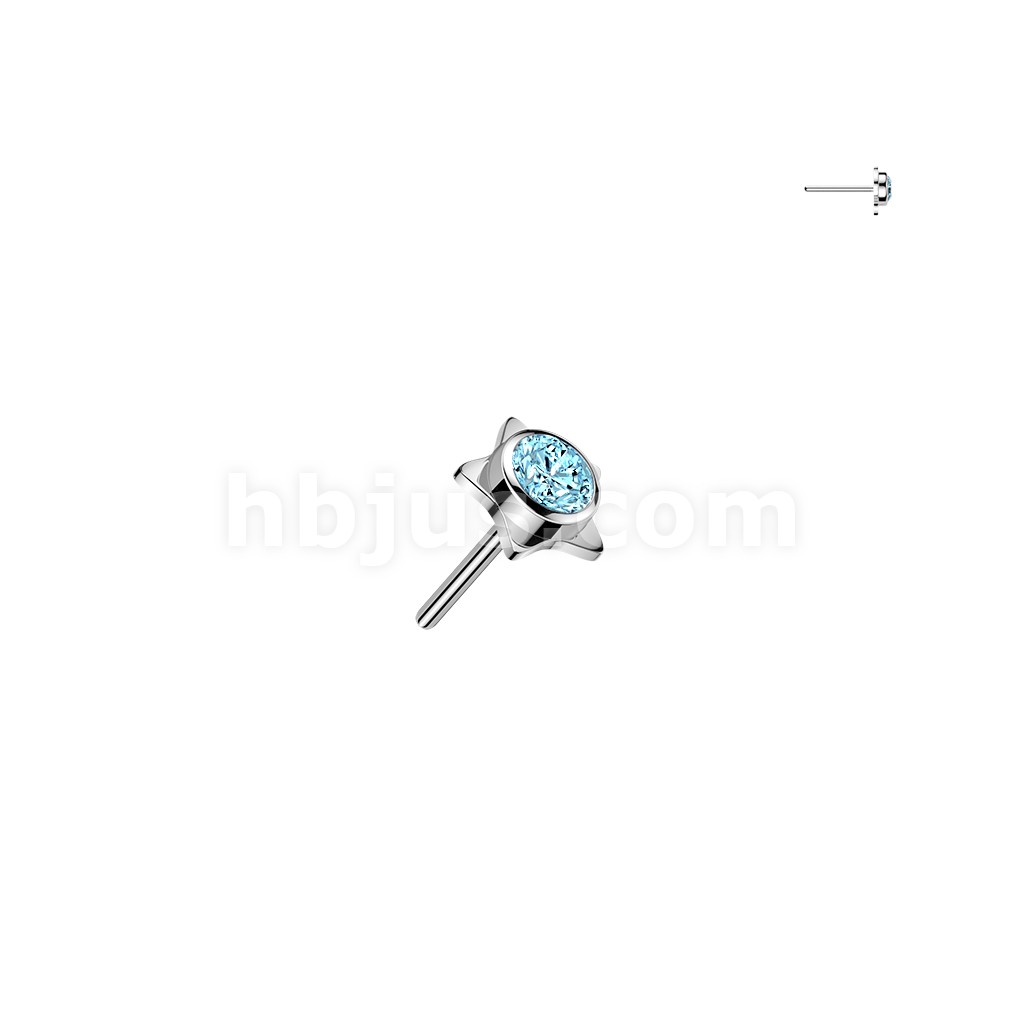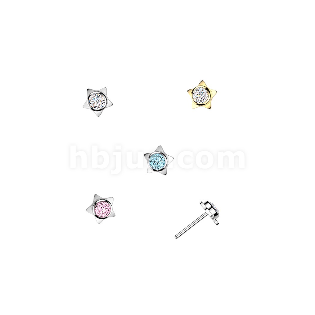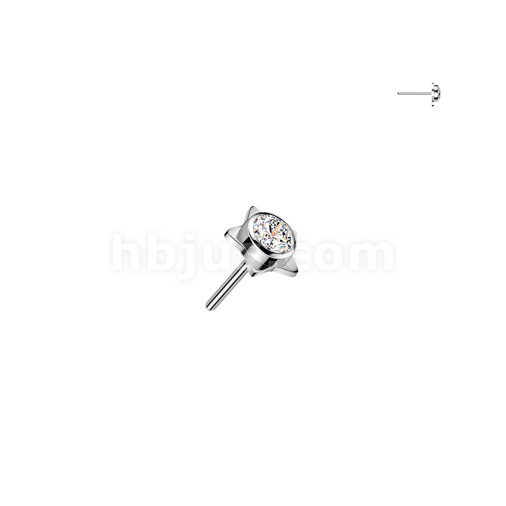 Titanium Threadless Star Top With Bezel Set CZ Center
