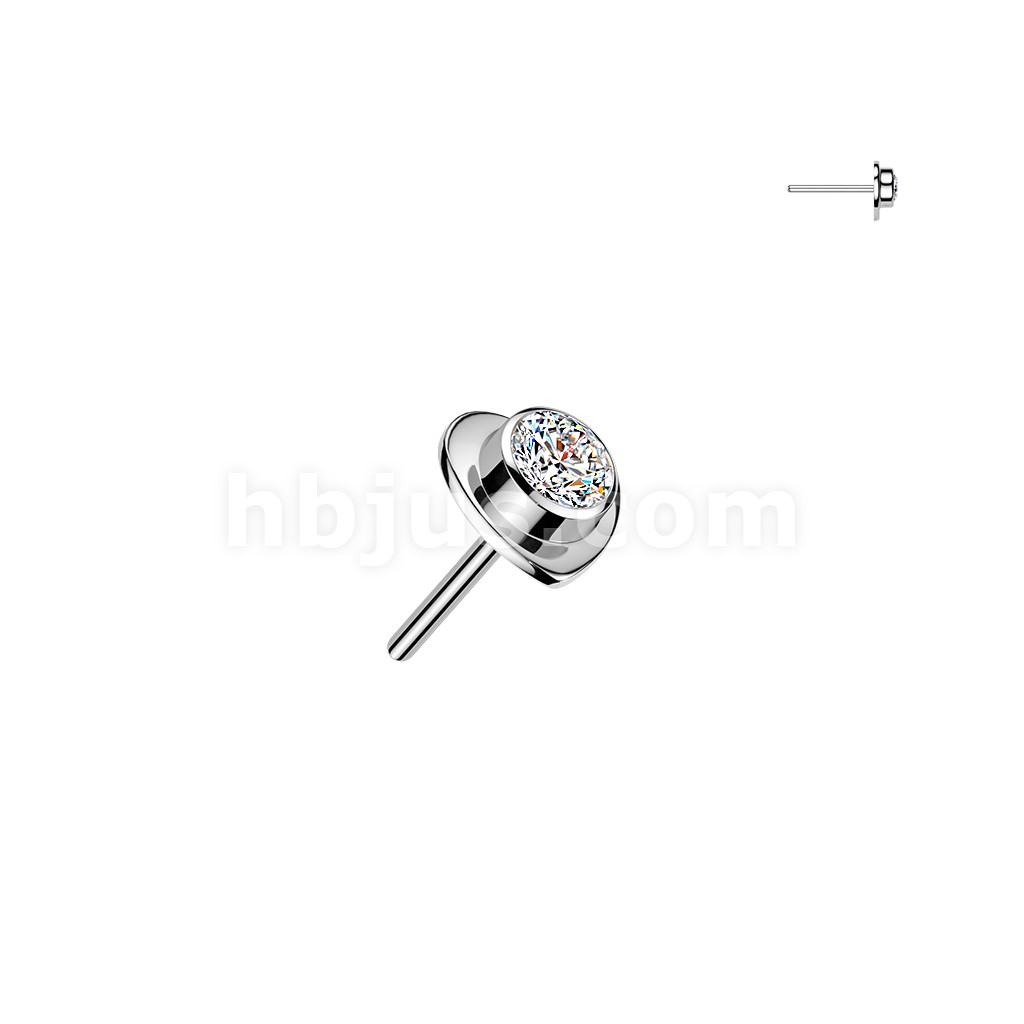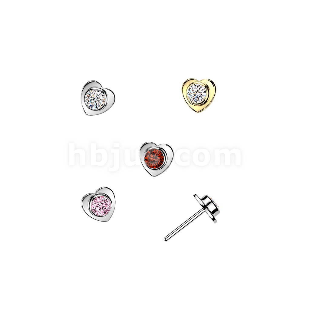 Titanium Threadless Heart Top With Bezel Set CZ Center