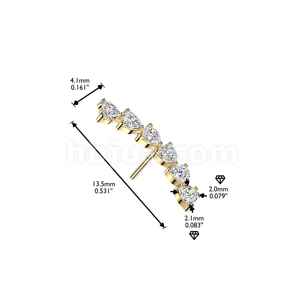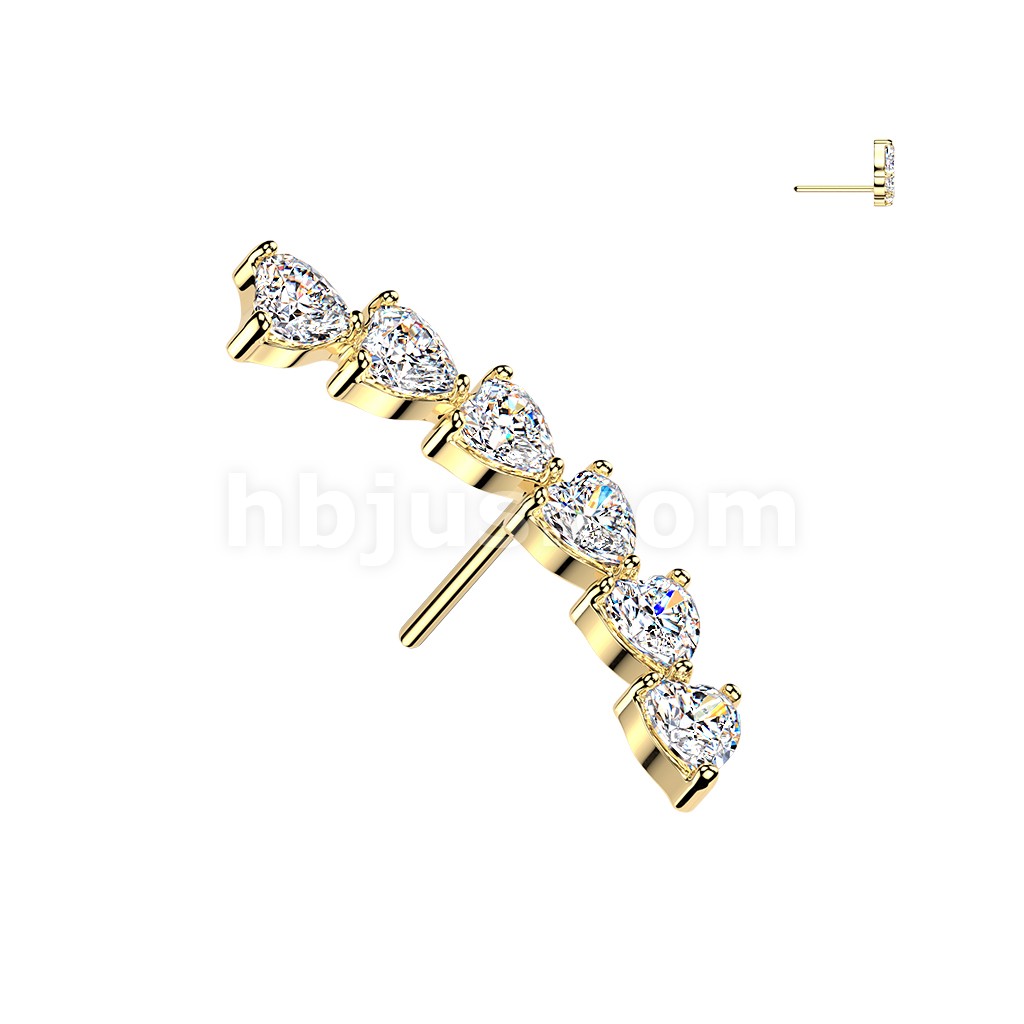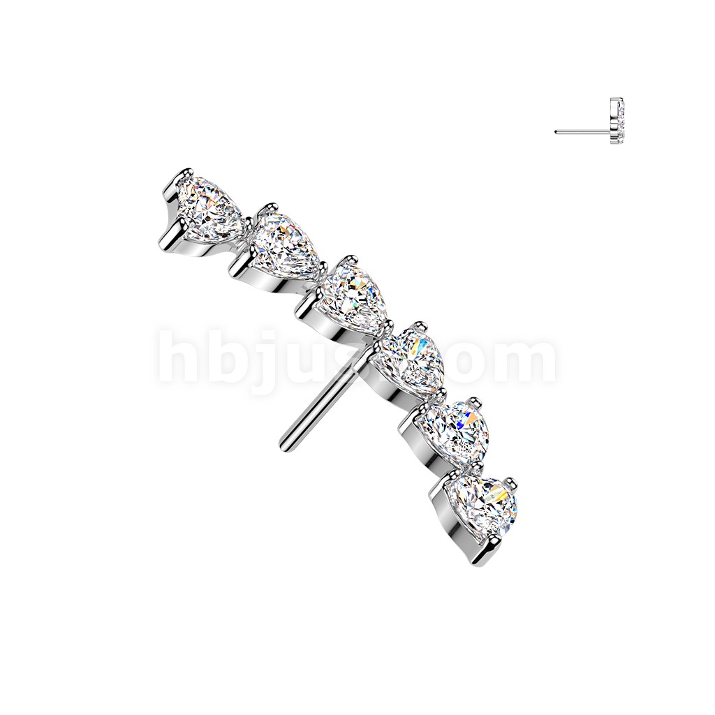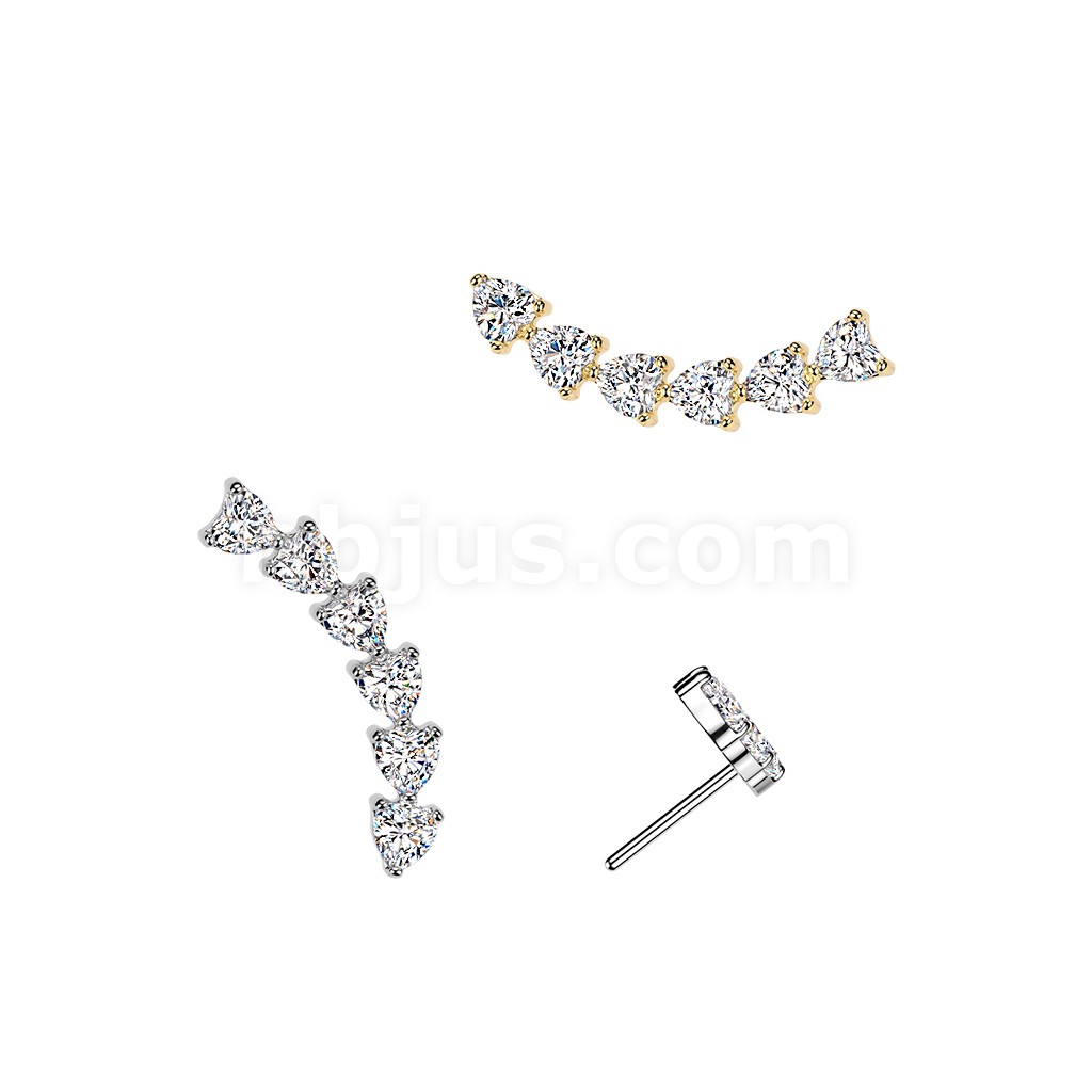 Titanium Threadless Prong Set 6 Heart Shaped CZ Curved Top