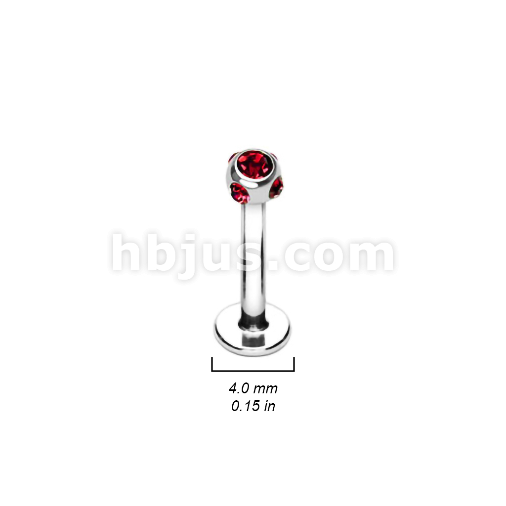 316L Surgical Steel Labret/Monroe With 5-Gem Set 4mm Ball 160pc Pack (20pcs X 8 Colors)