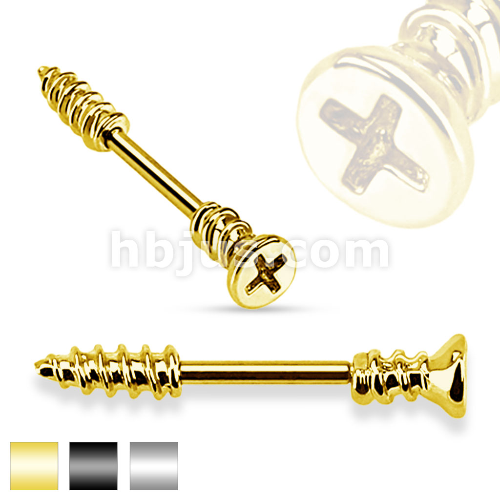 Screw Shaped Nipple Bar 316L Surgical Steel