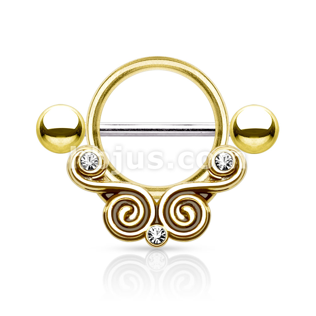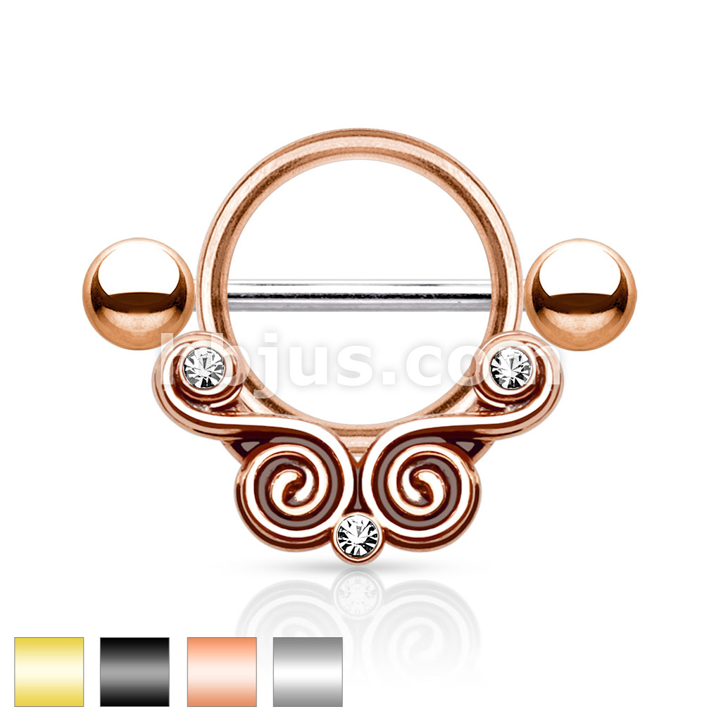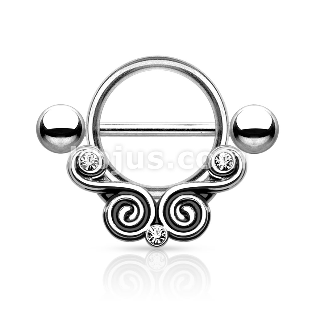 Lace Swirls with Clear Gems 316L Surgical Steel Nipple Shield