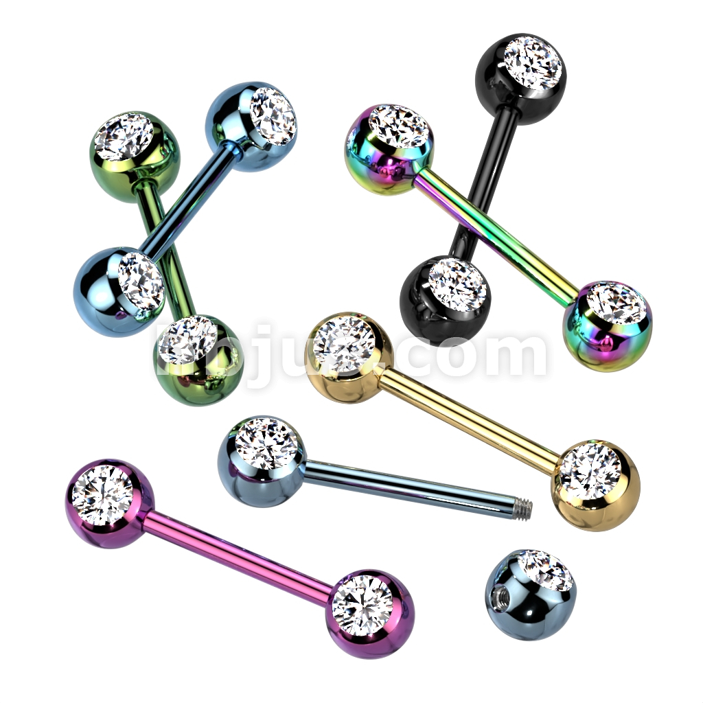 70pcs Assorted Mix Double CZ Titanium IP Over 316L Stainless Steel Nipple Bar Pack