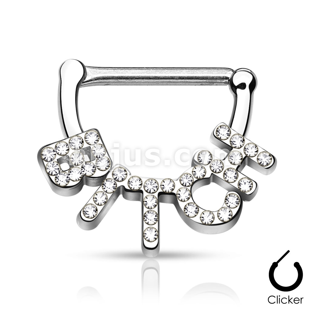 Crystal Paved "Bitch" 316L Surgical Steel Nipple Clicker