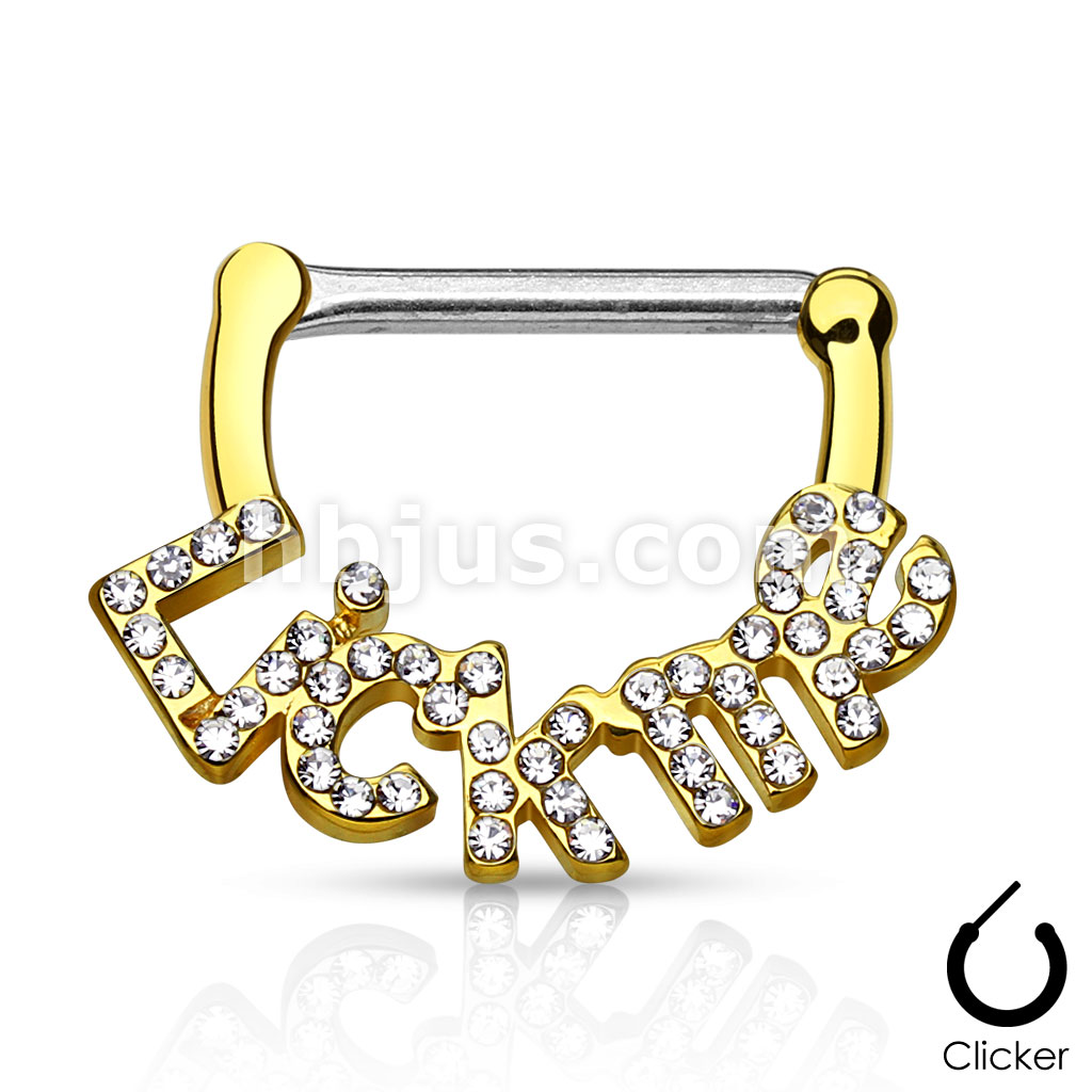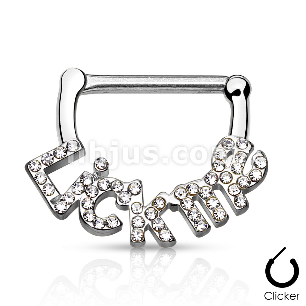 Crystal Paved "Lick Me" 316L Surgical Steel Nipple clicker