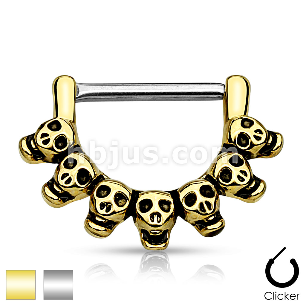 Lined Skull 316L Surgical Steel Nipple Clicker