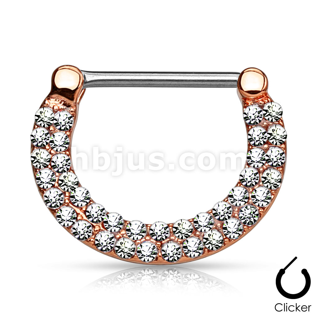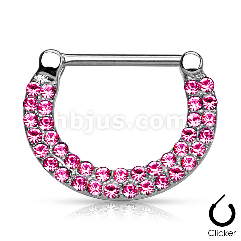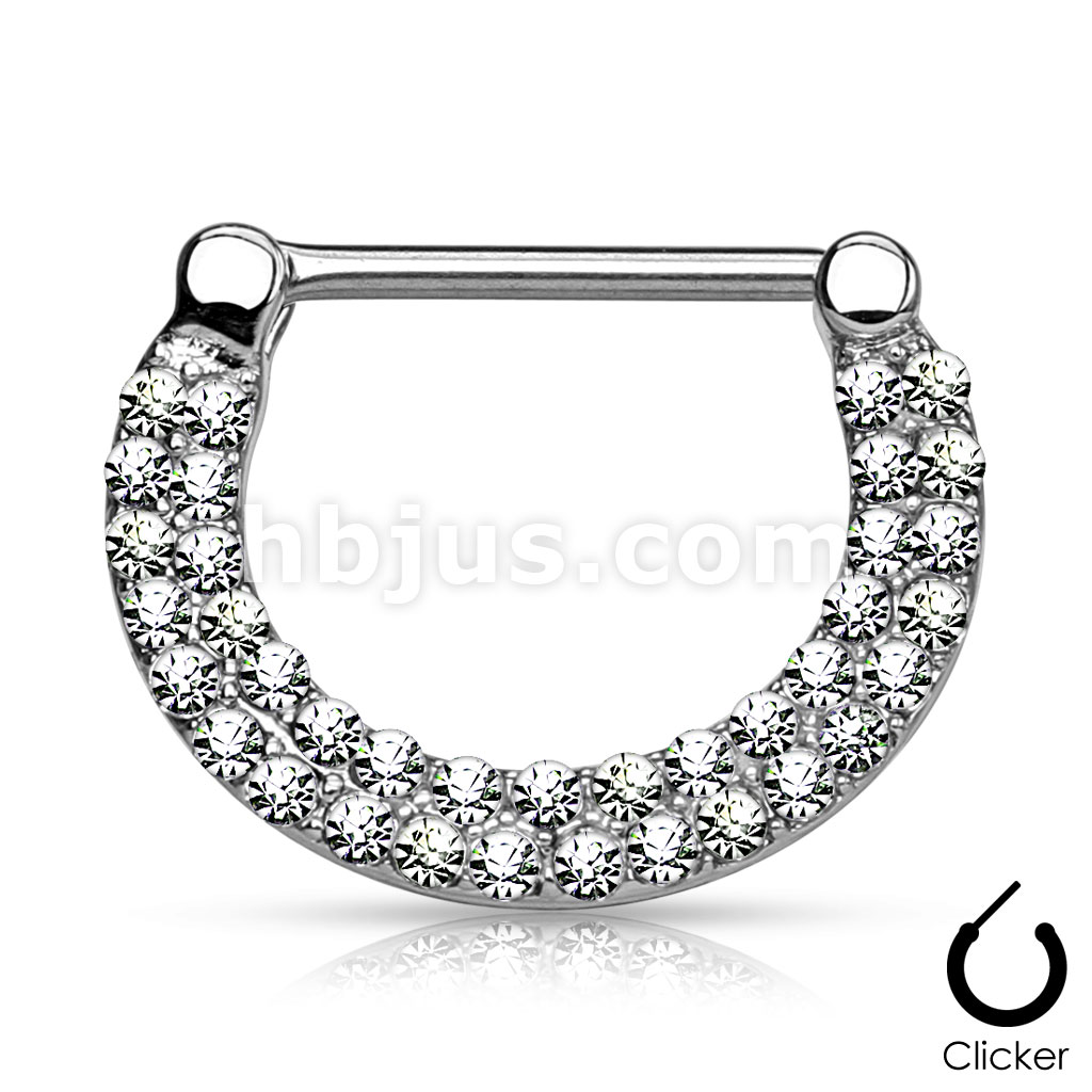 Double Lined Crystals Paved 316L Surgical Steel Nipple Clickers