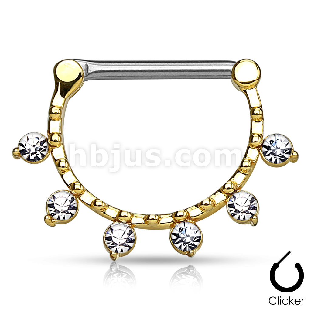 6 Crystals Hanging Beaded Line 316L Surgical Steel Nipple Clickers