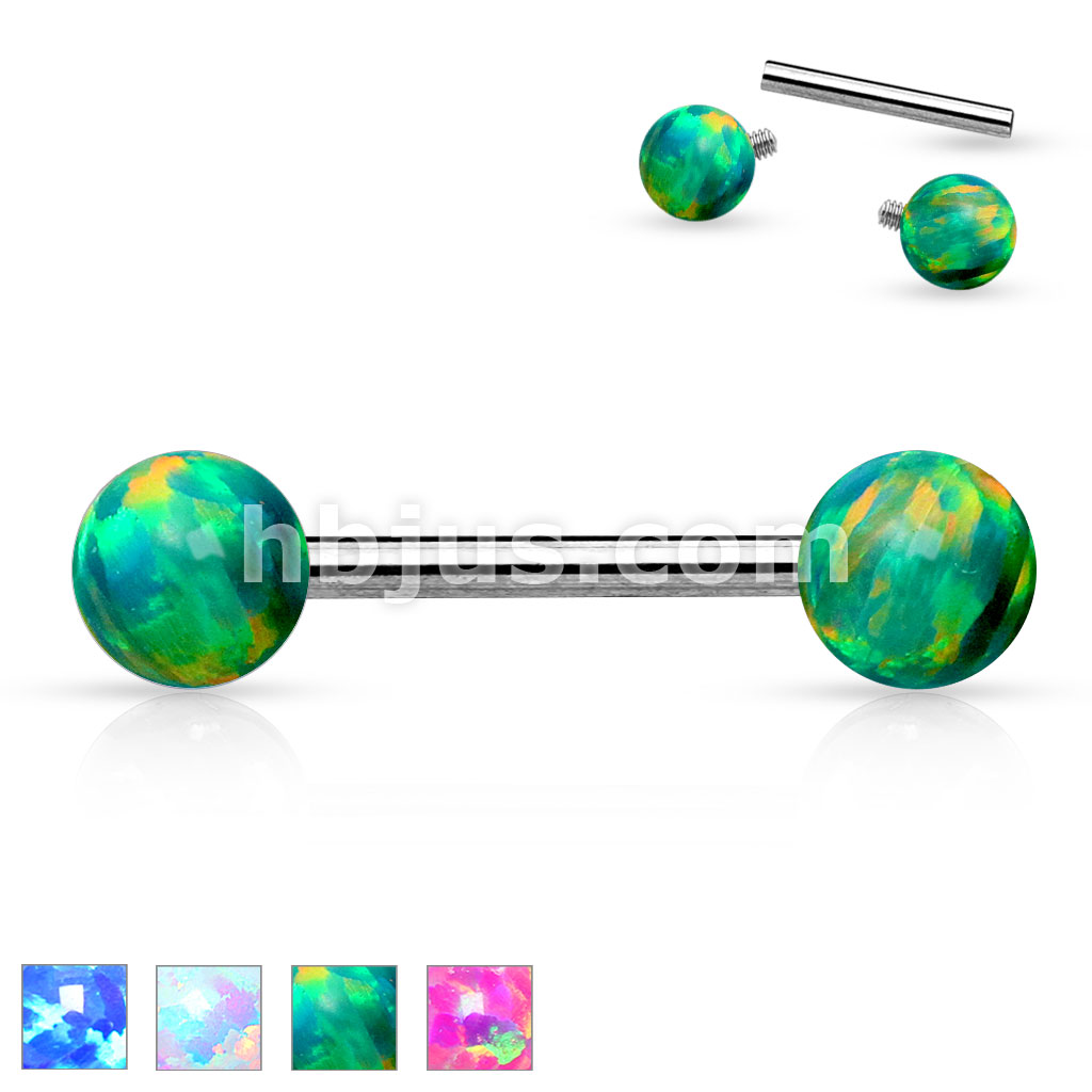 14 Gauge Internally Threaded Opal Balls on Both sides 316L Surgical Steel Nipple Bar
