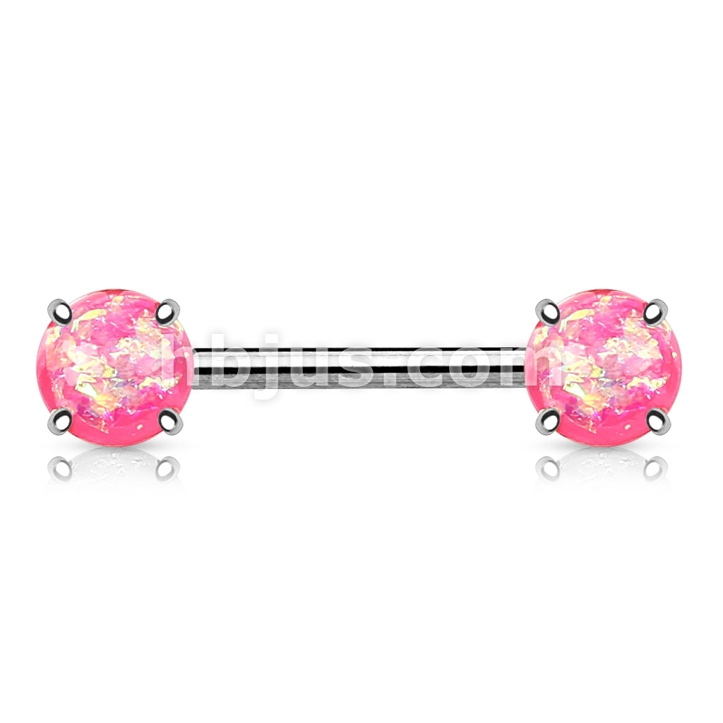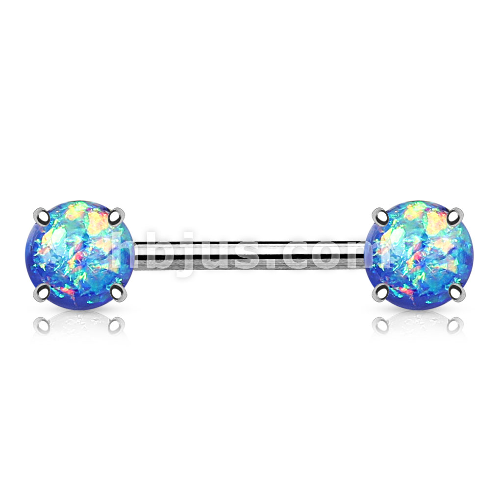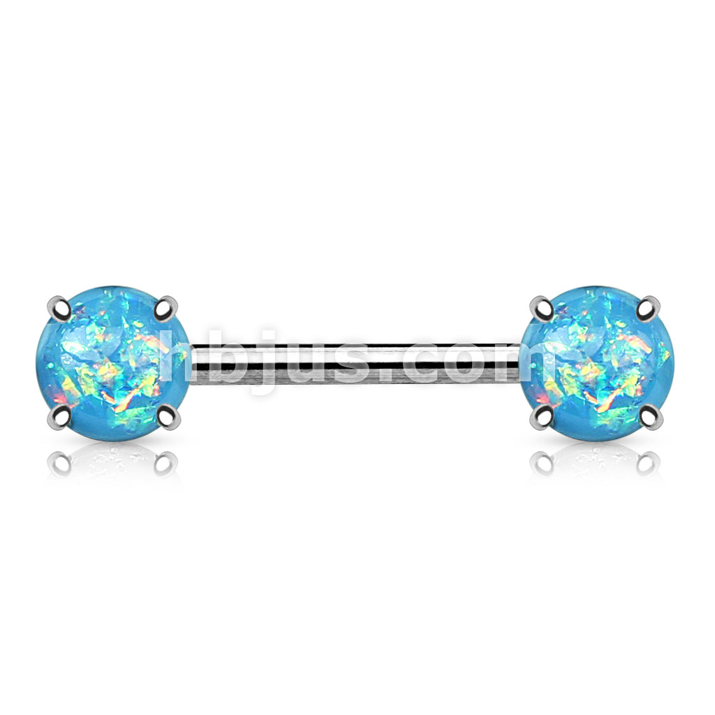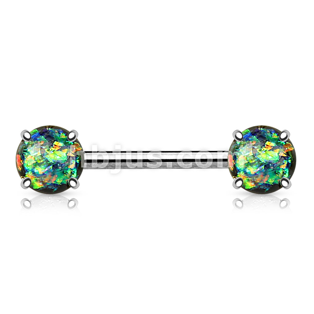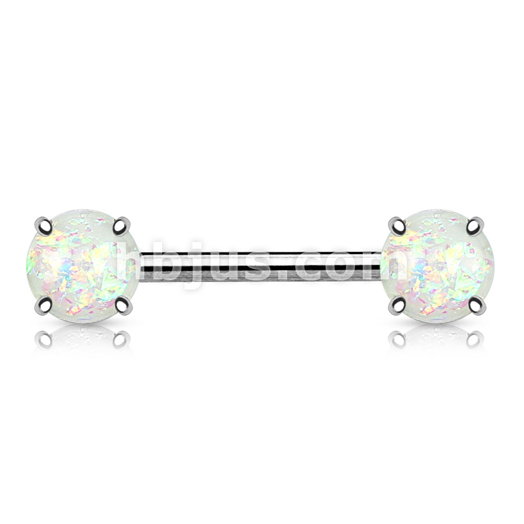 Opal Glitter Front Facing Prong Set 316L Surgical Steel Nipple Barbells