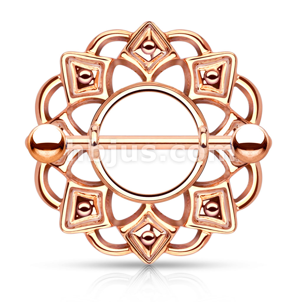 Tribal Shield Nipple Ring with 316L Surgical Steel Barbell