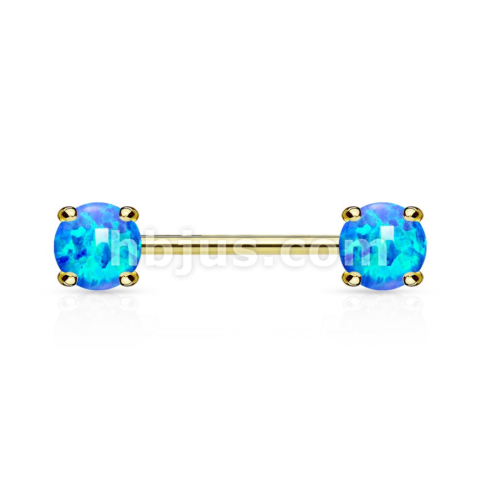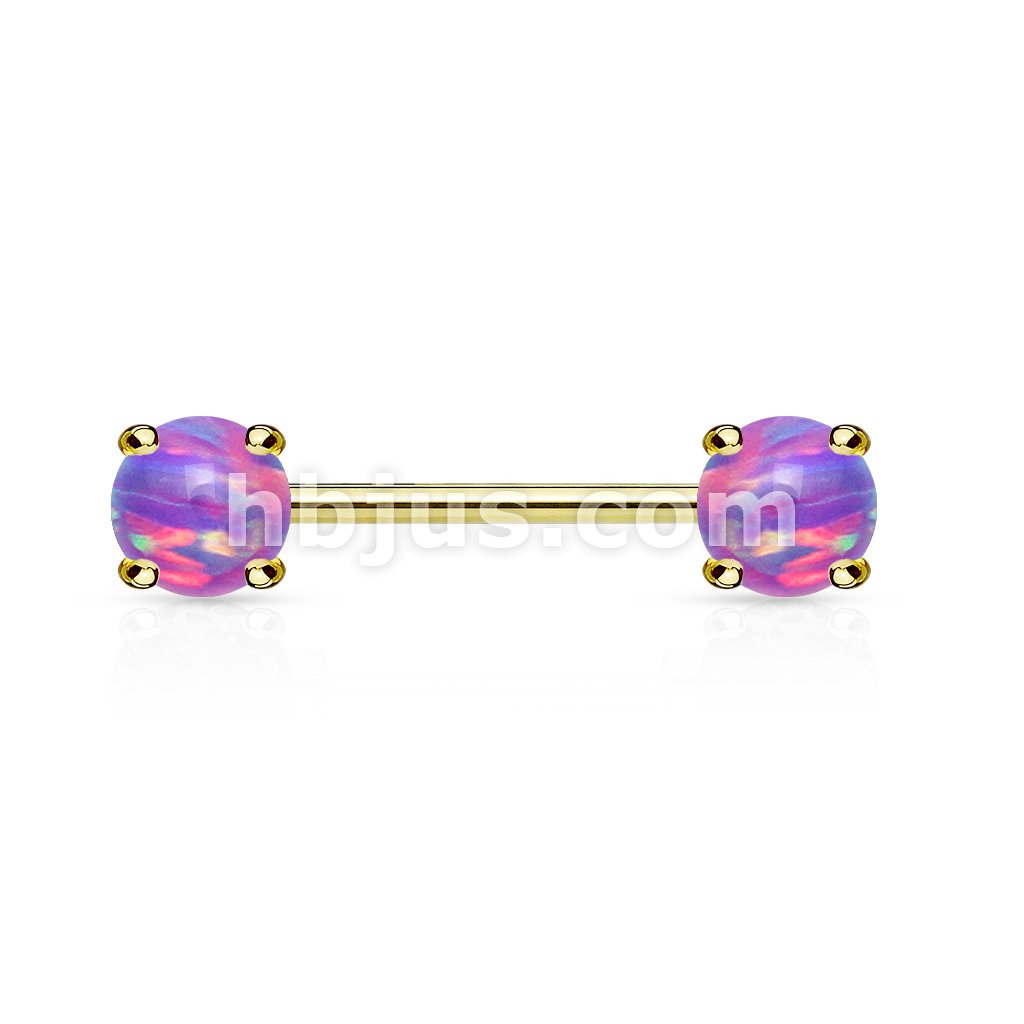 Opal Prong Set Front Facing Ends 14Kt. Gold Plated Over 316L Surgical Steel Nipple Barbells