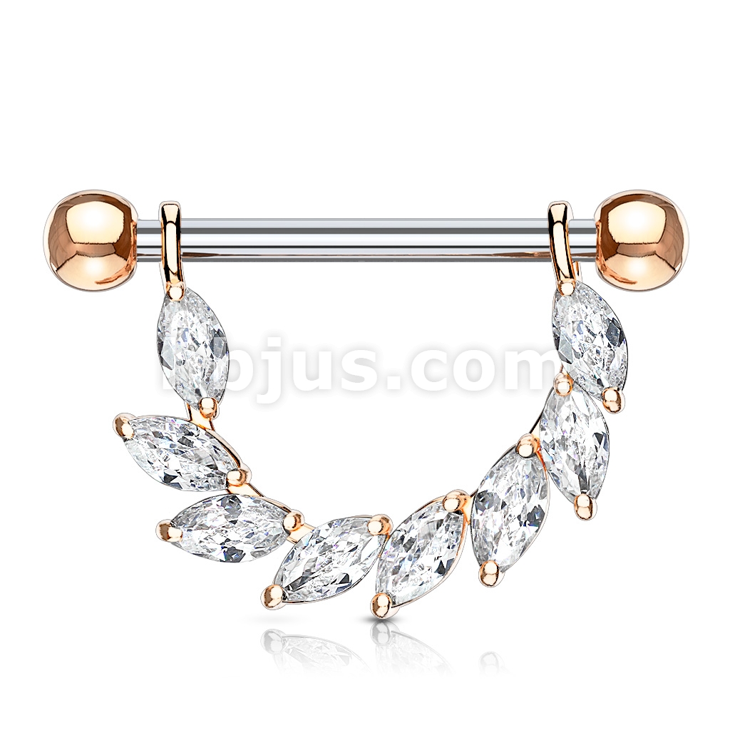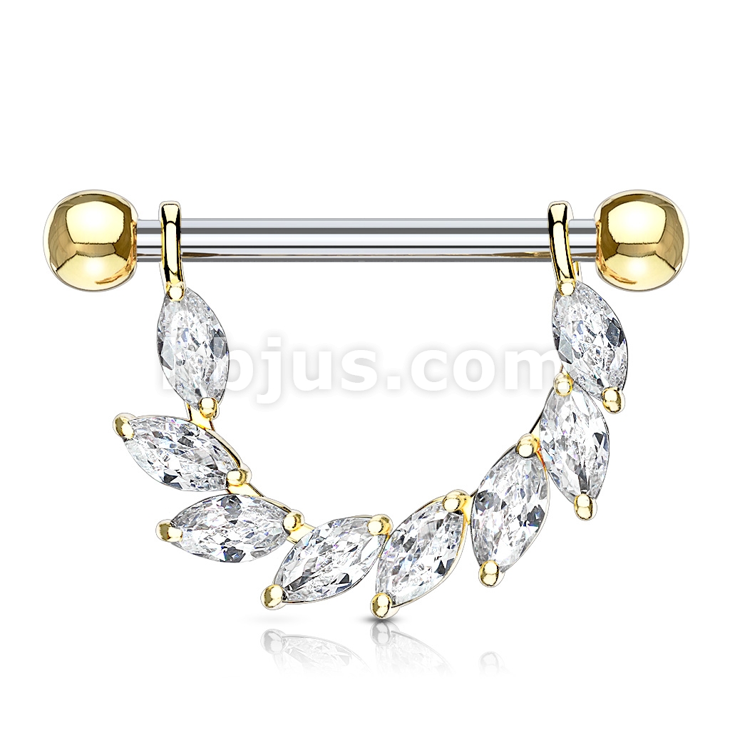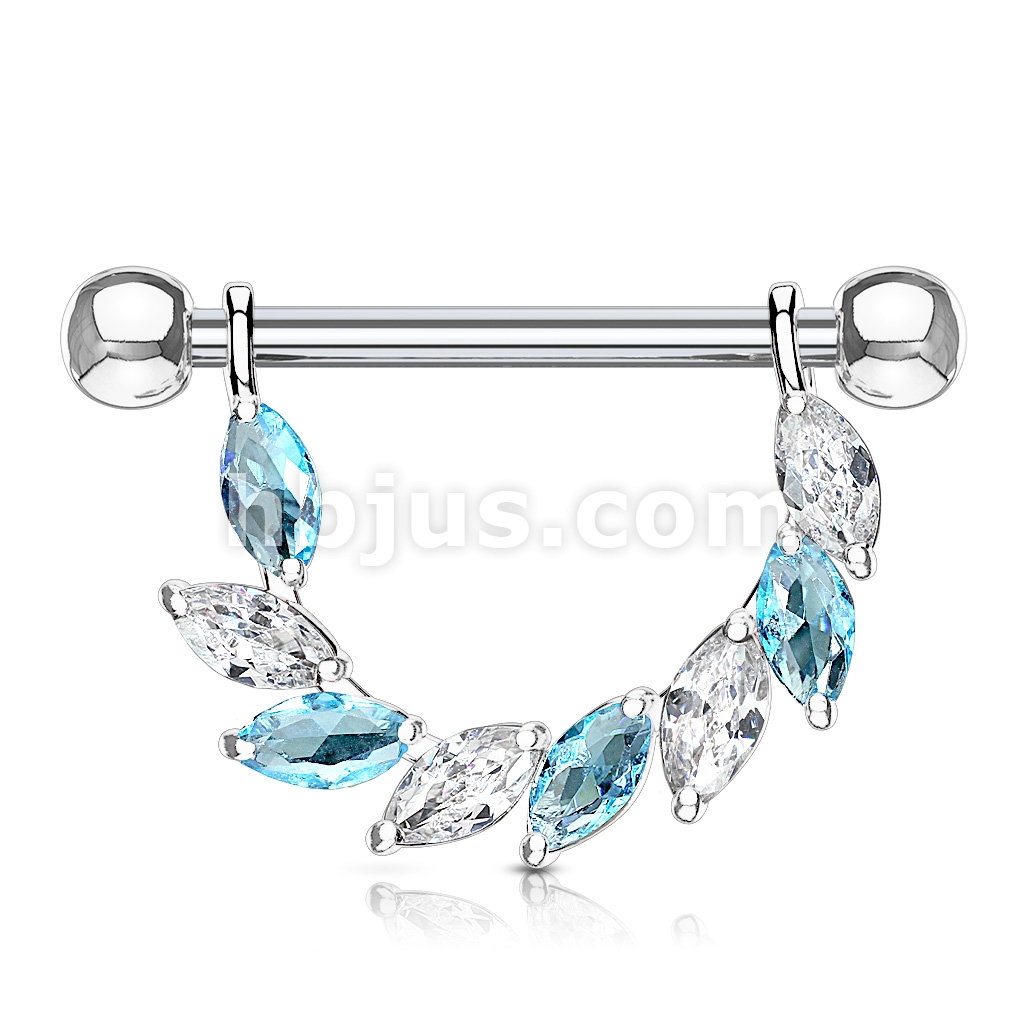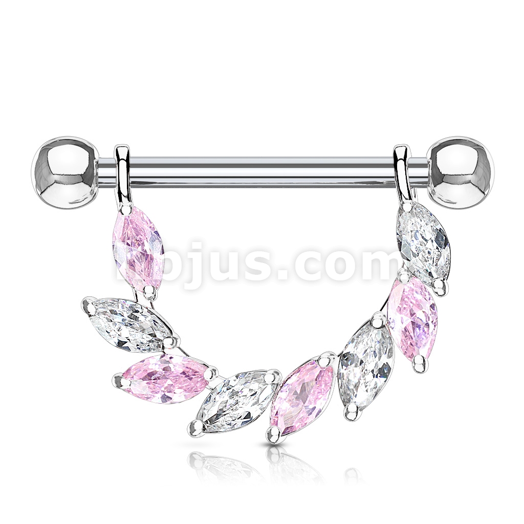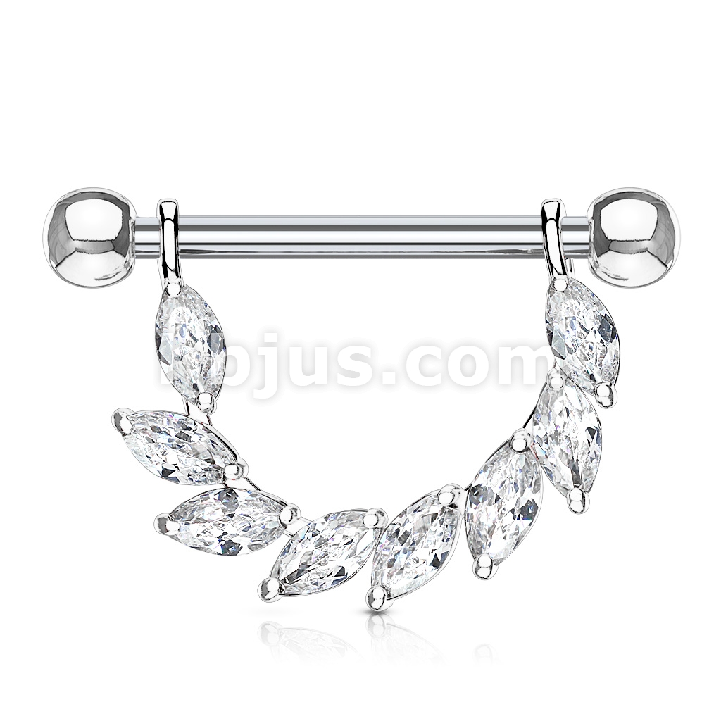 Marquise CZ Bridge Dangle Nipple Ring with 316L Surgical Steel Barbell